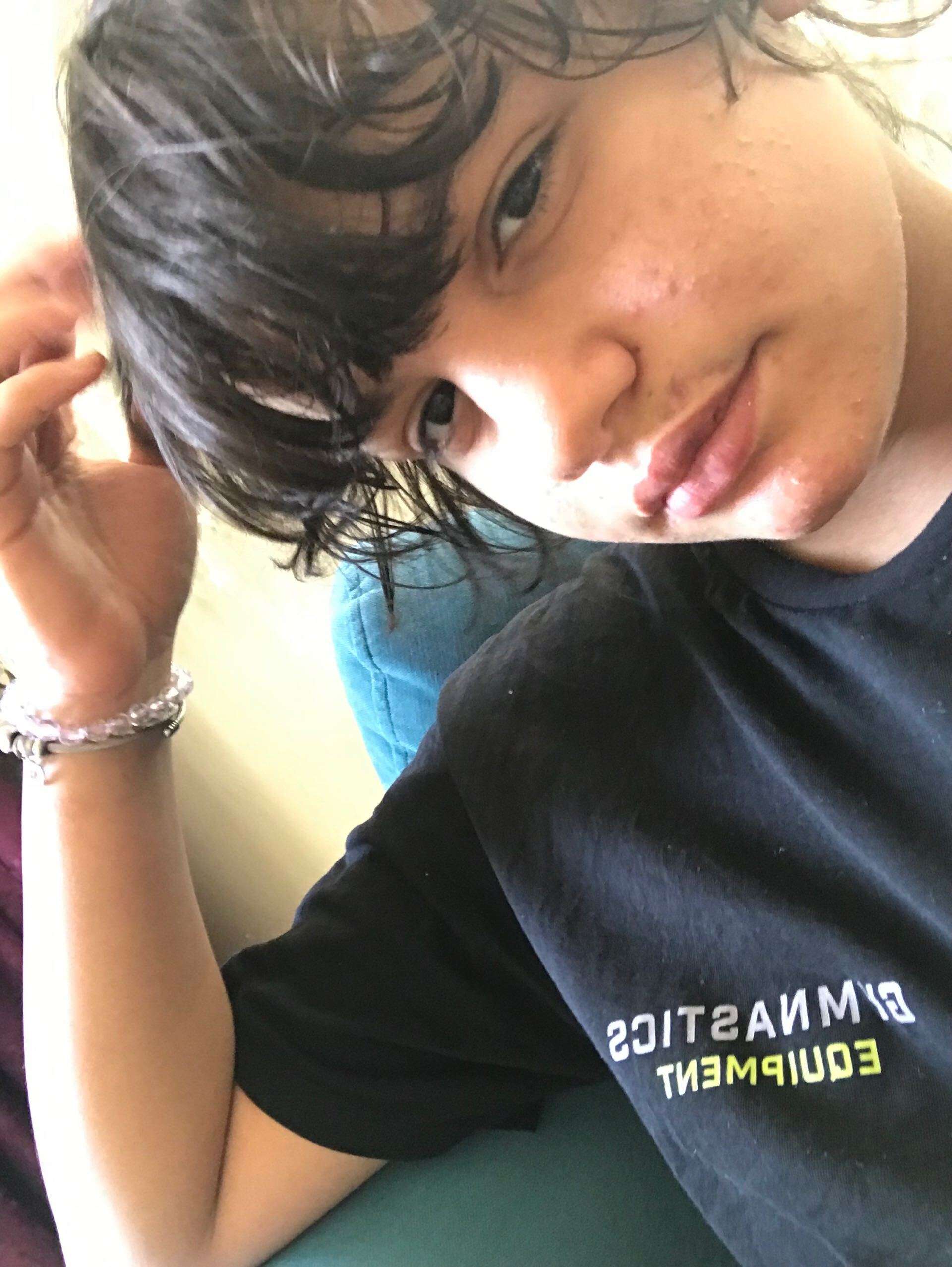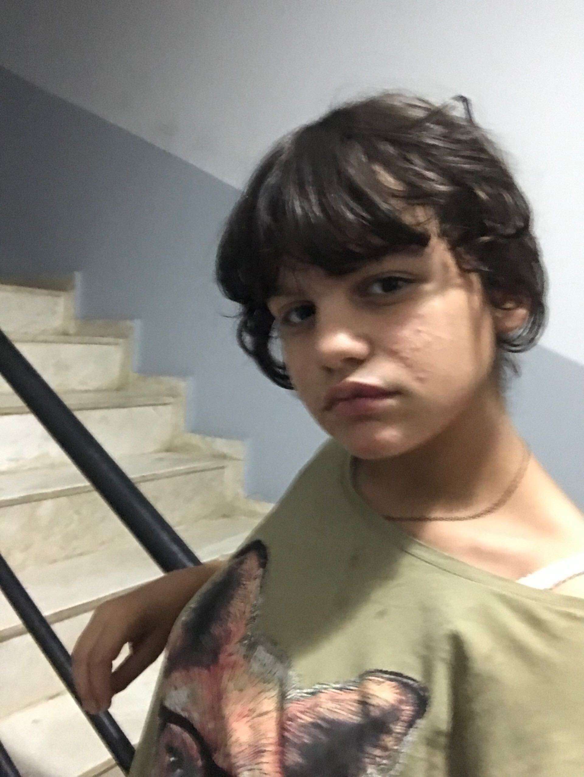 13 yaşında saçları küt siyah bandana siyah kısa kollu tişört siyah pantolon 1.65 boylarında 65 kilo civarında beyaz tenli