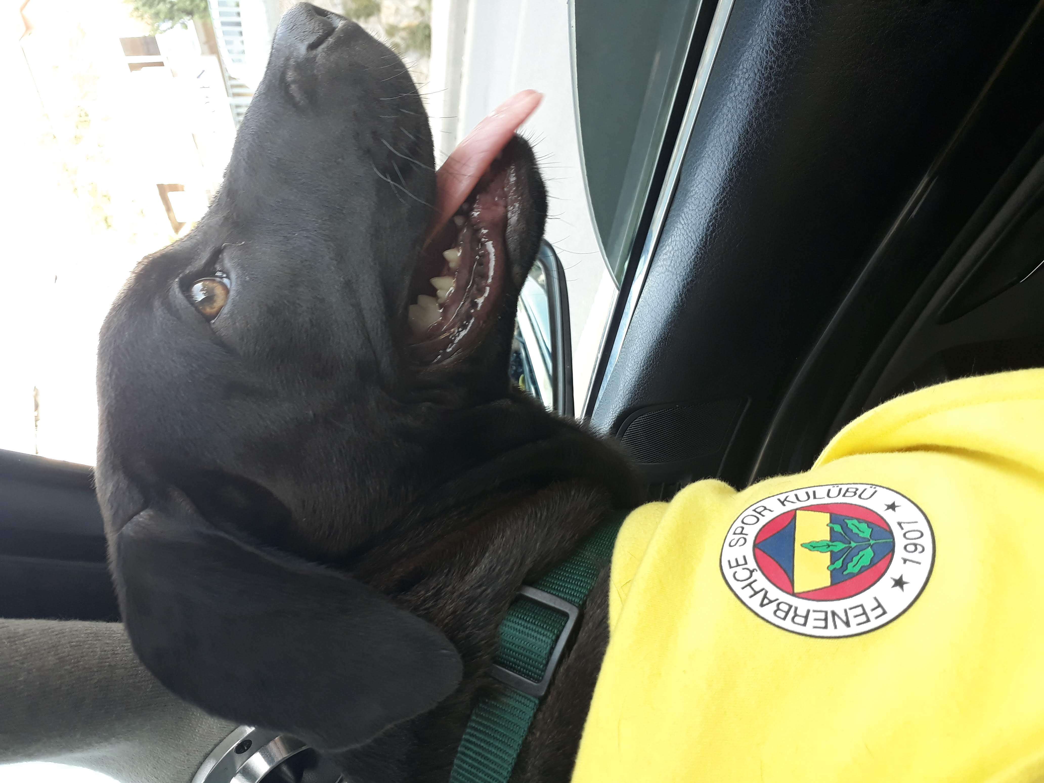 Simsiyah labrador Boynunda yeşil tasmasi vardı Göğsünde ufak bir beyazlık var