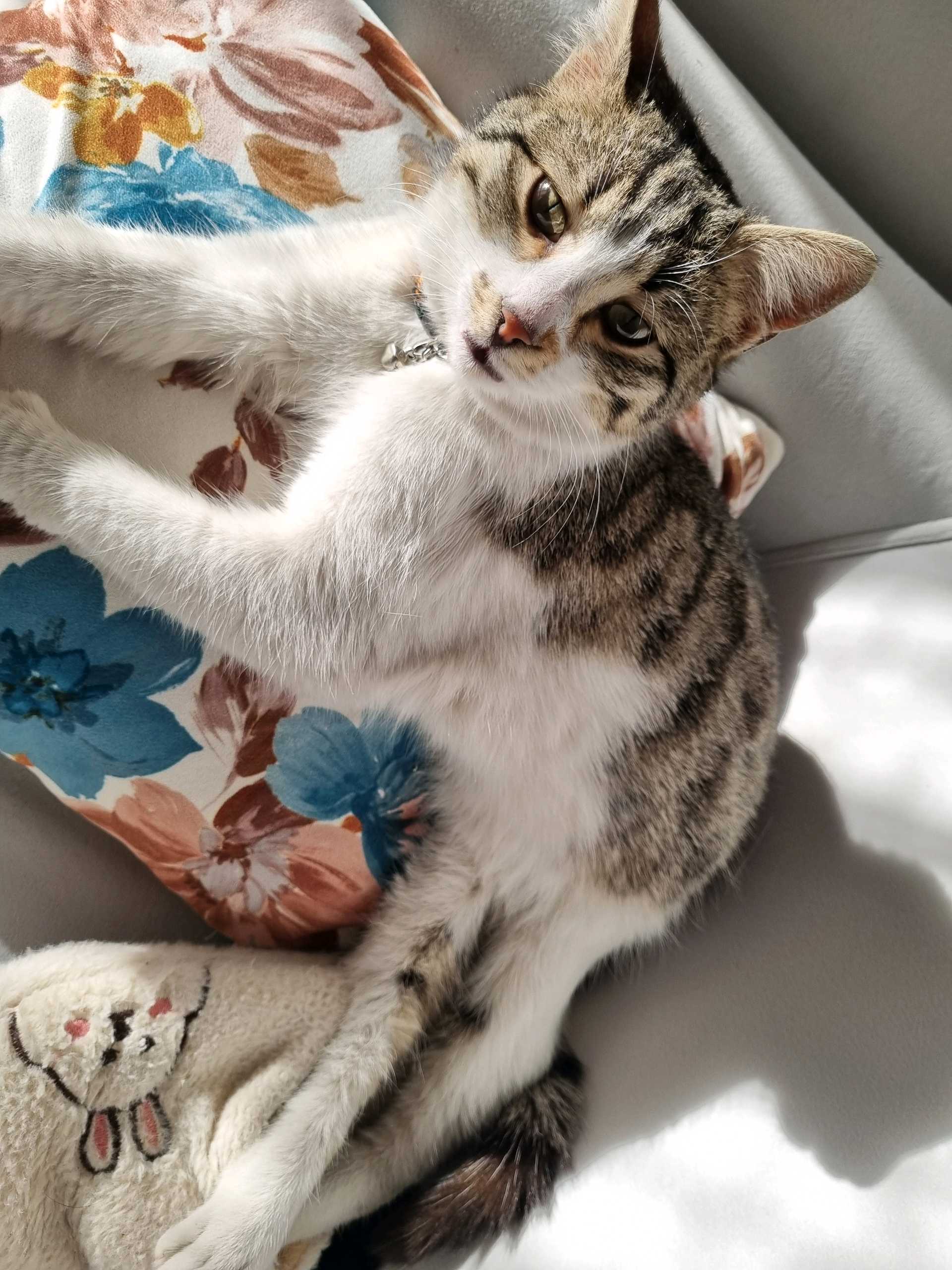 ankara Keçiören çaldıran mahallesinde bulundu . tekir cinsi. disi kedi . turuncu siyah renkli tasması var .