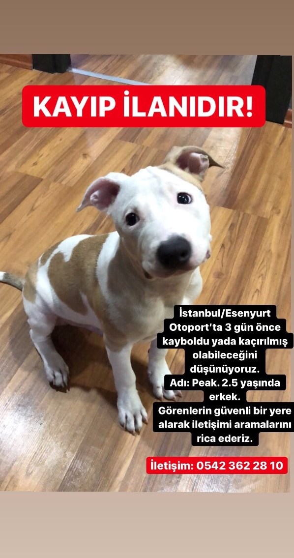 İstanbul/Esenyurt Otoport’ta 3 gün önce kayboldu yada kaçırılmış olabileceğini düşünüyoruz. Adı: Peak. 2.5 yaşında erkek. Görenlerin güvenli bir yere alarak iletişimi aramalarını rica ederiz. İletişim: 0542 362 28 10