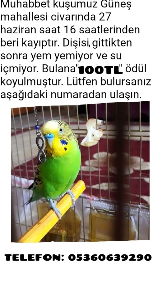 Kayıp muhabbet kuşu ilanları