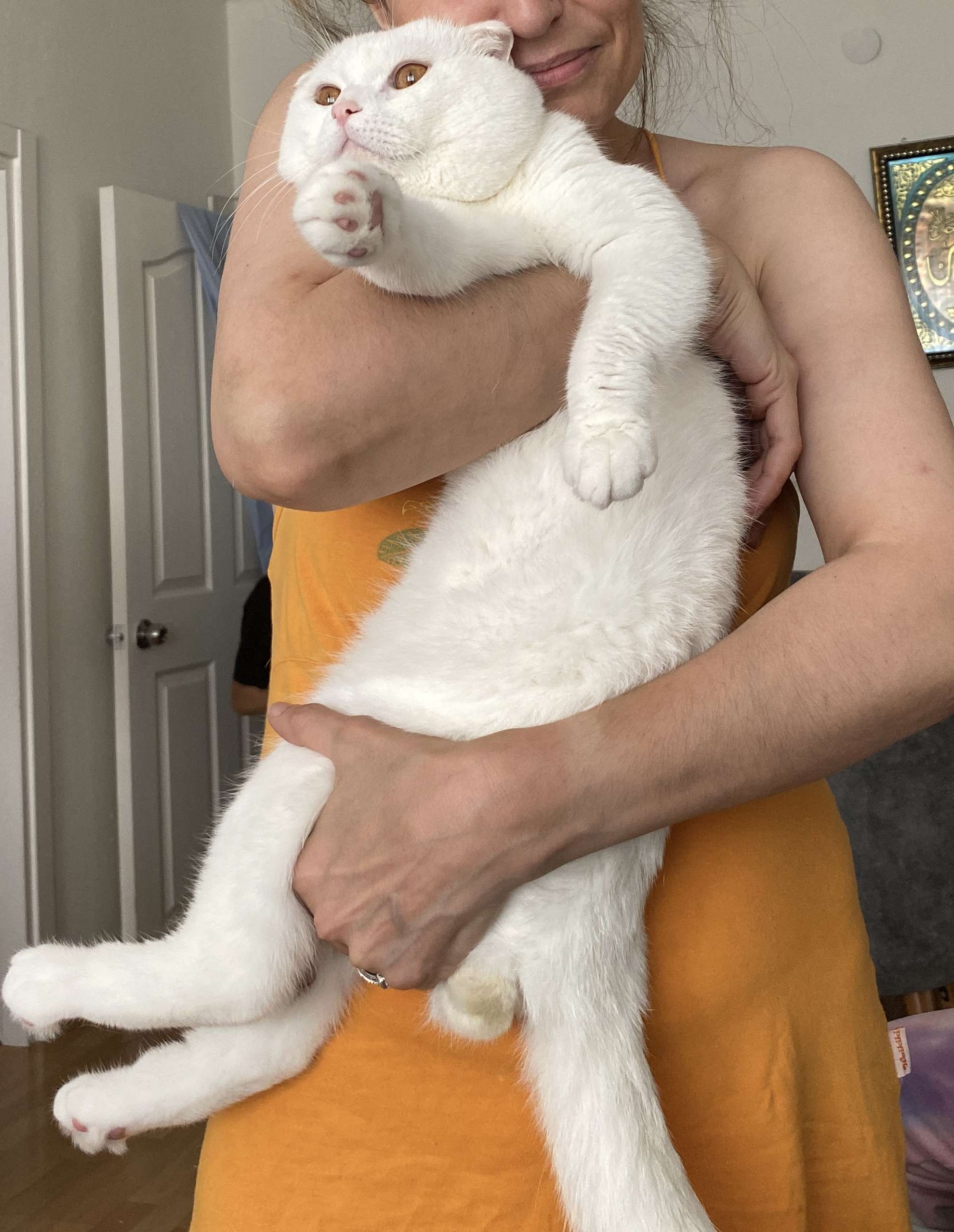 Beyaz bir Scottish fold kedi 1.5 yaşında saldırgan değil kaçmaz ismi Rıfkı erkek kedi ismine tepki verir gözleri hafif açık kahverengi kulakları düşük ve dokunulduğunda hoşlanmaz tüyleri çok dökülür 4 gün önce Maltepe zümrütevler mahallesinde Nil caddesinde kaybolmuştur