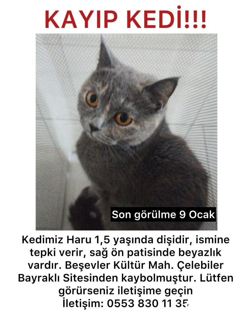 Kayıp kedi BURSA BESEVLER KÜLTÜR MAHALLESİ