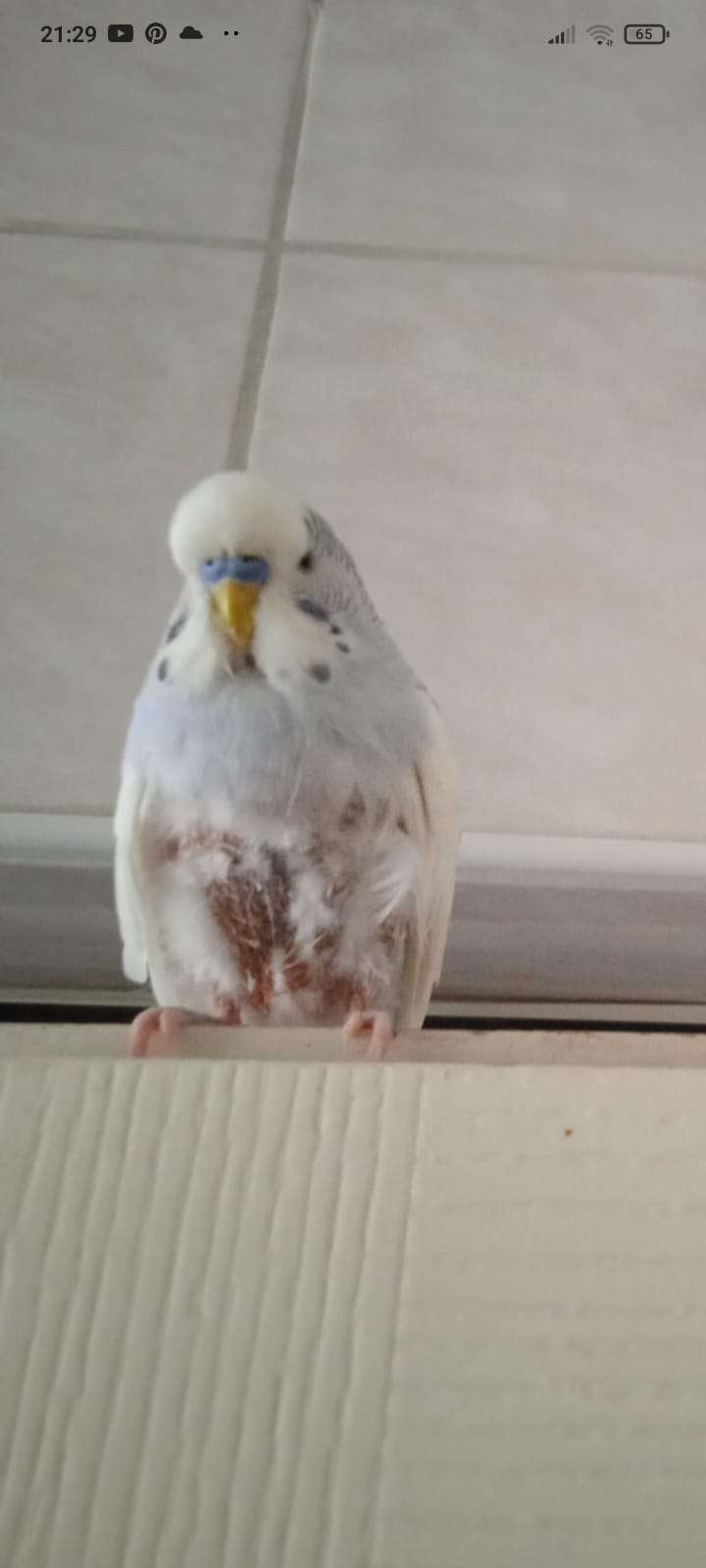Minnoş isimli kuş 4 yaşında Mavi ve beyaz renkli Cinsiyeti erkek