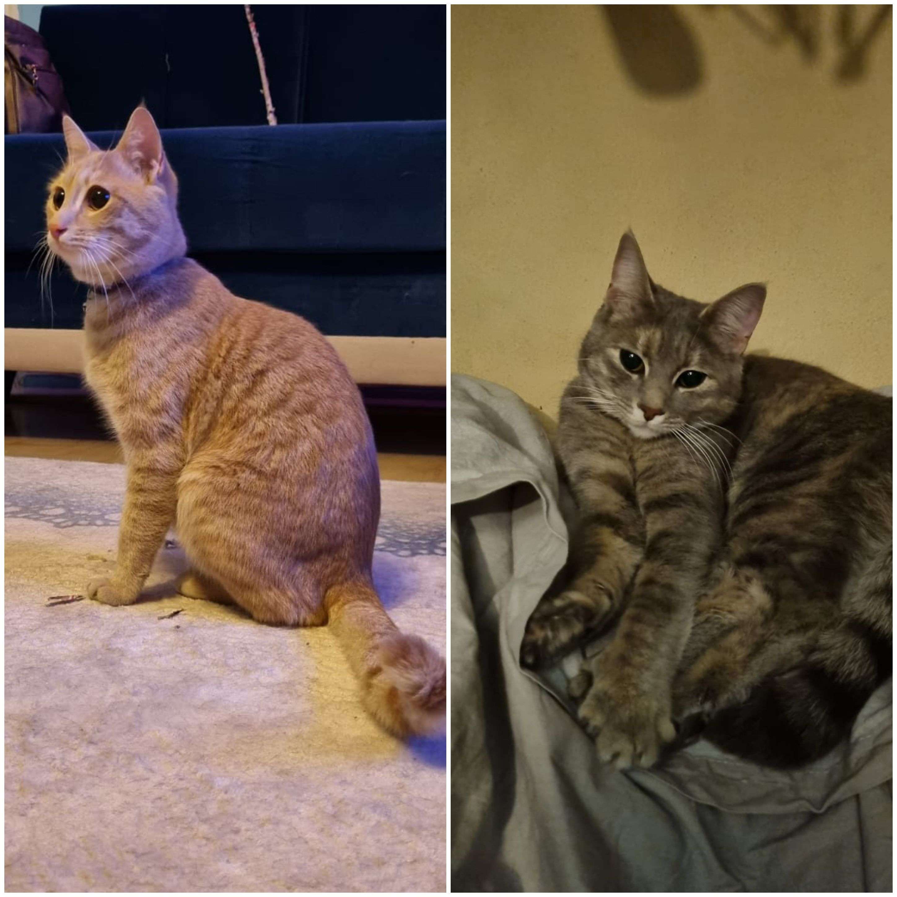 Fotoğraftaki kediler Keçiören İncirli'de birlikte bulundu. Sarı olan erkek, gri olan dişi. İkisinin de tasması var. Çipleri yok. Sahiplerini arıyoruz.