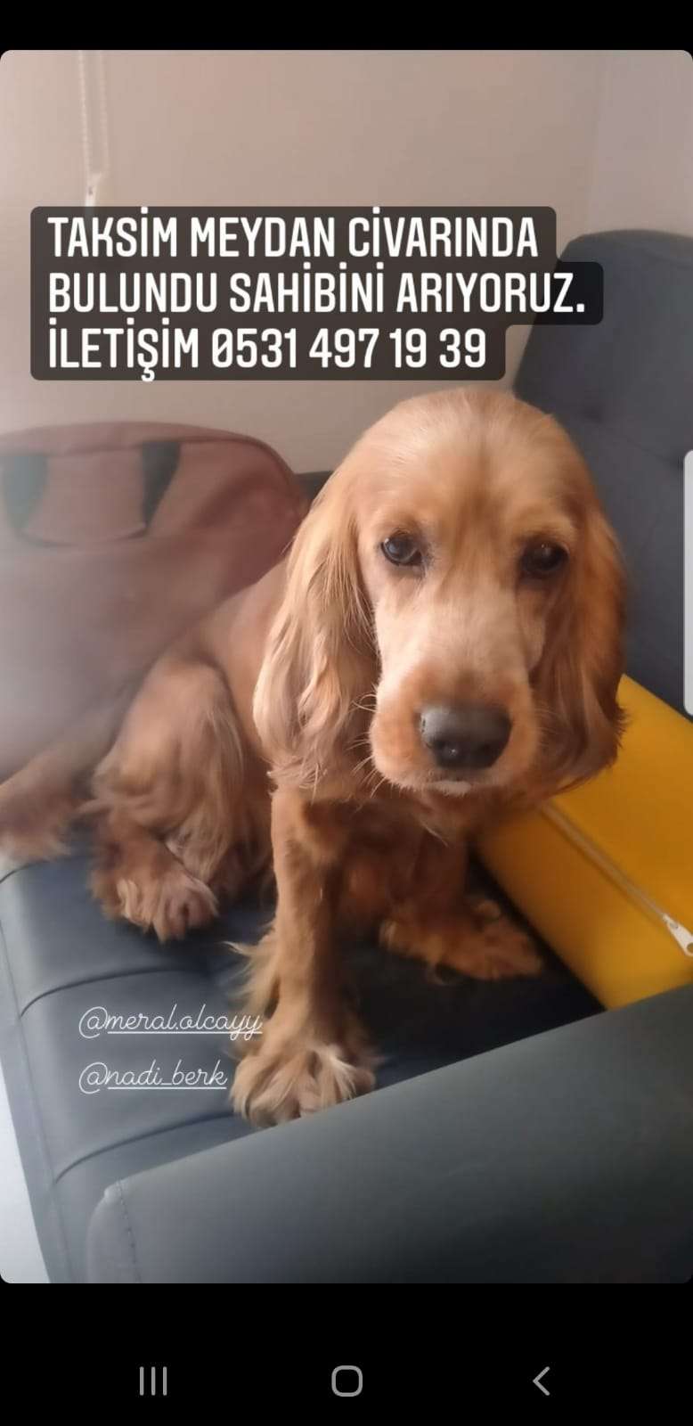 Cocker cinsi dişi köpek yaklaşık bir hafta önce taksim civarında bulundu sahibini arıyorum
