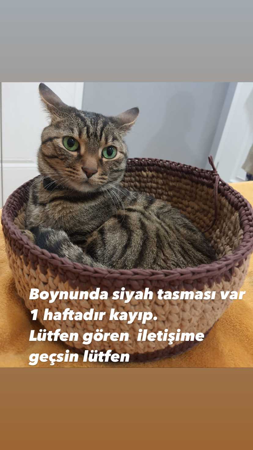 Bir hafta önce Aksaray Toki civarında kaybolmuştur. Ama heryerde olabilir. Siyah tasması var tekir cinsi Zayıf ve uzun