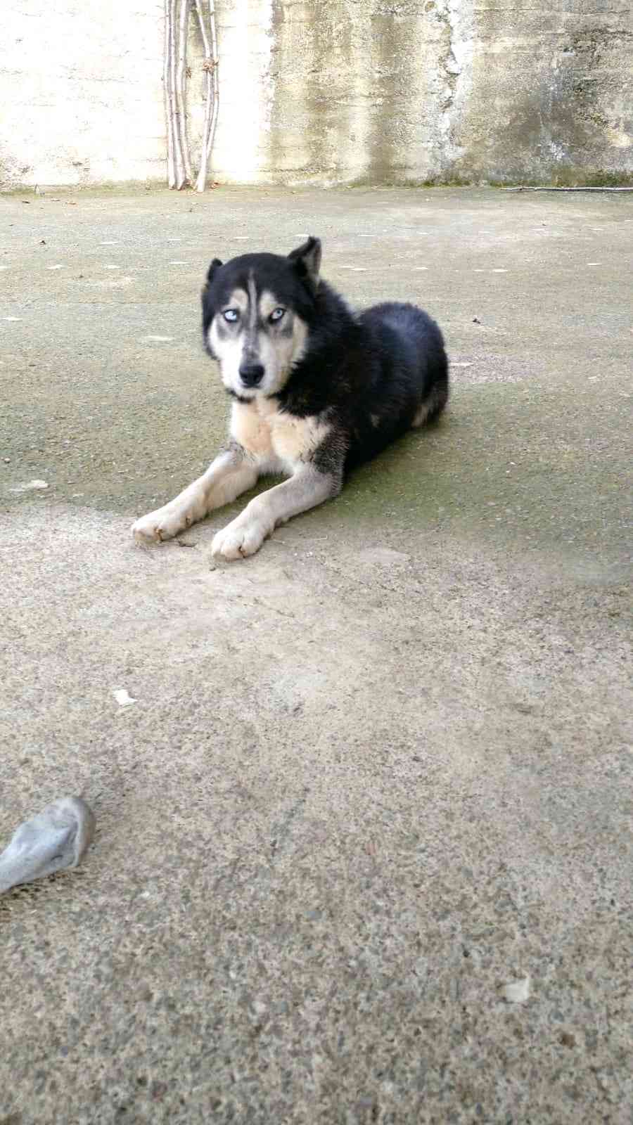 Yaklaşık bir ay önce mahallede başıboş geziyordu şuan bizimle. Kulakları kesik sağ kulağı sol kulağından kısa sağ alt köpek dişi kırık tasmasız sibirya kurdu.