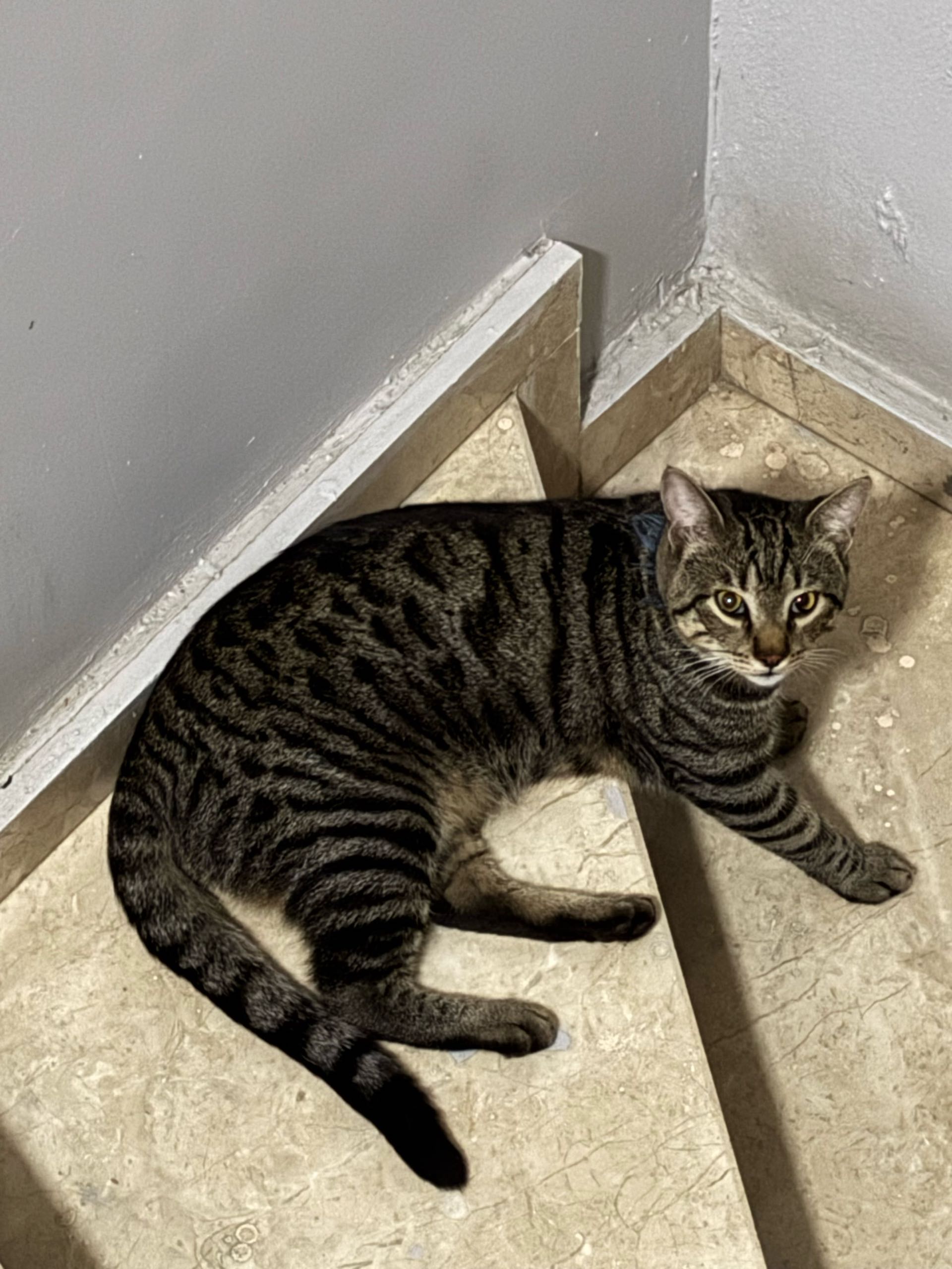 Ataşehir Küçükbakkalköy mahallesinde binaya sığınan bir kedi bulduk. Çipi yok mavi eski tasması var. Sağlık durumu iyi.