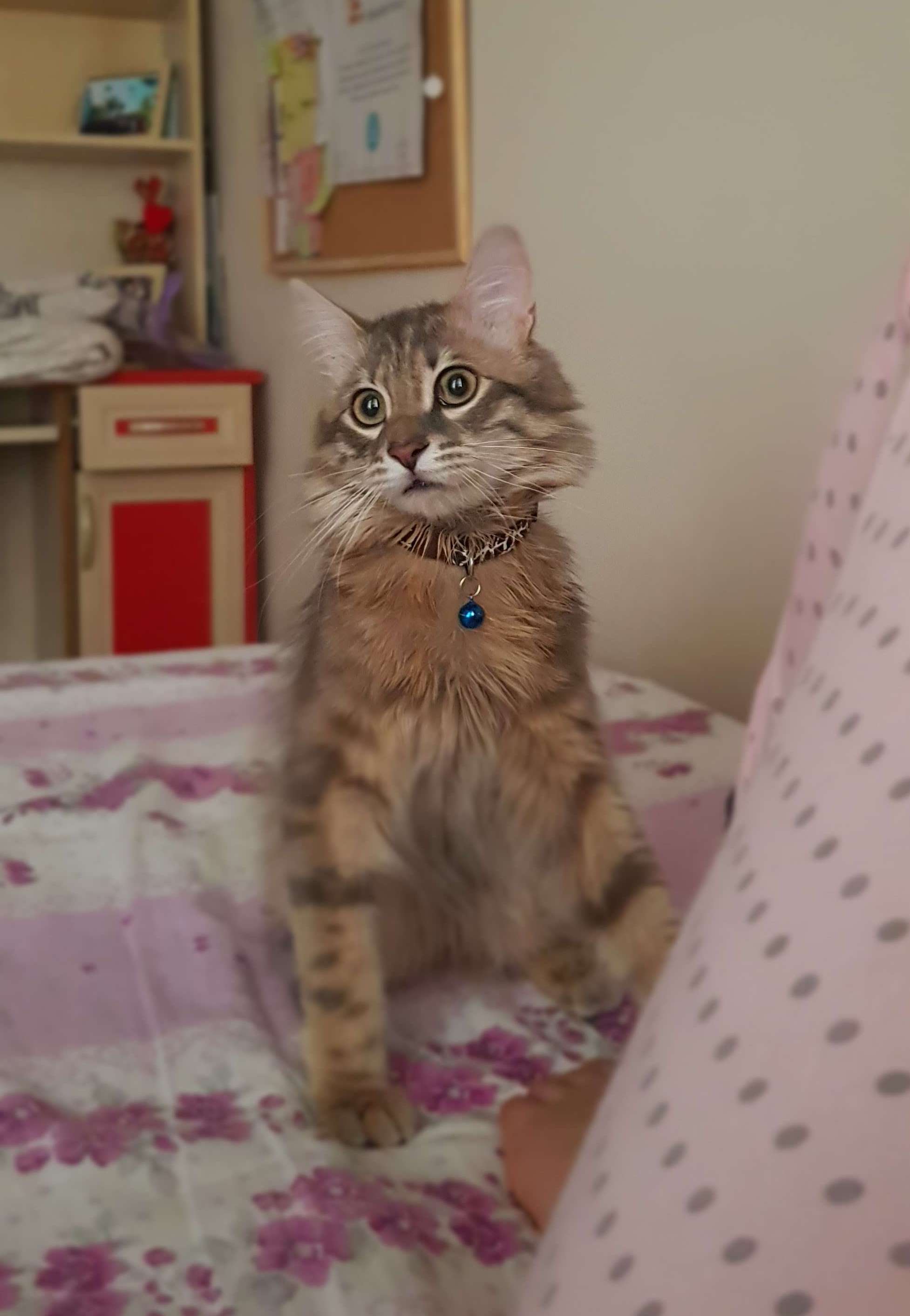 Adi Badem 8 aylık gri renk cok korkak sokak bilmiyor leopar desenli ve maci boncuklu zili var