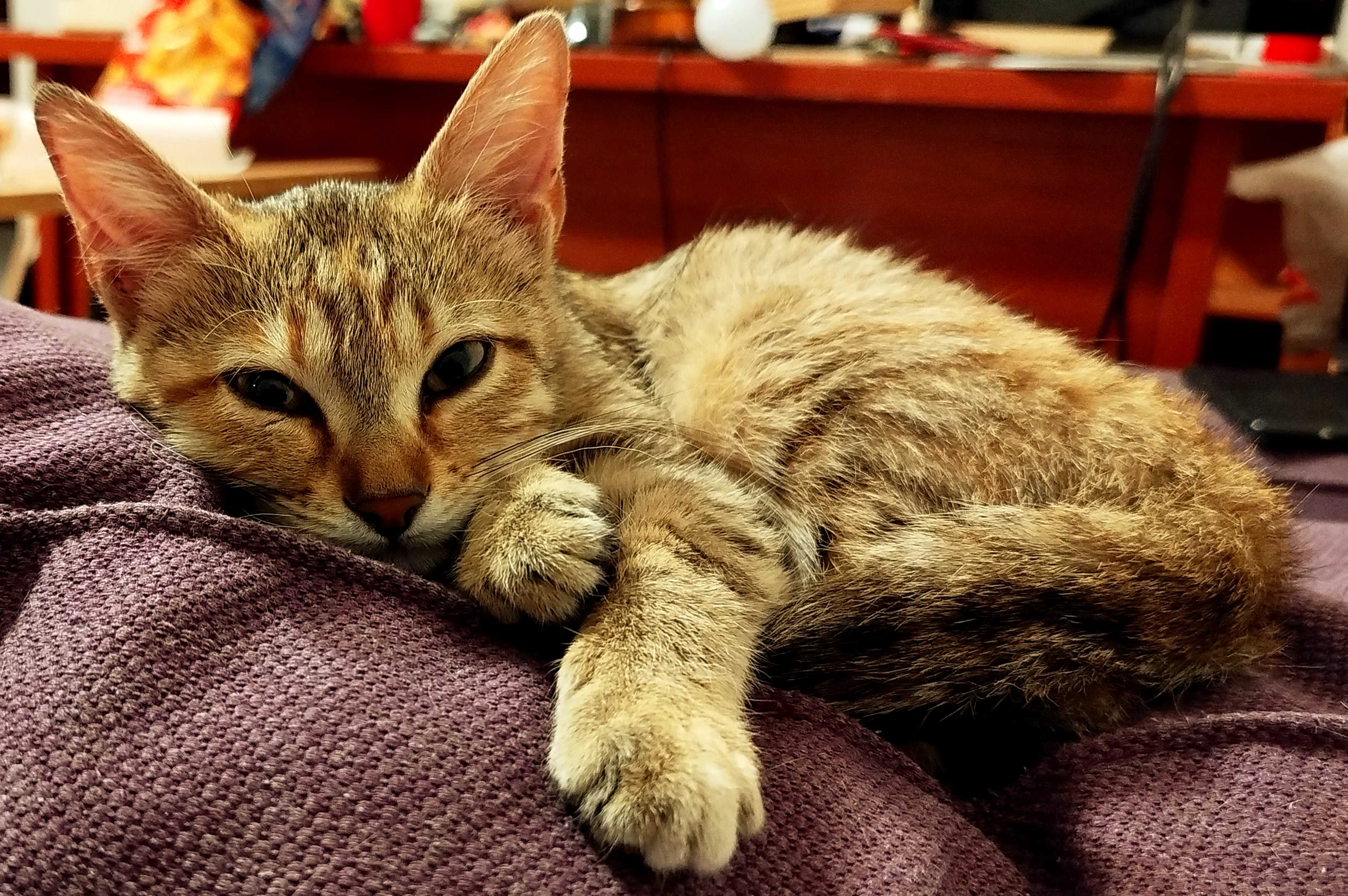 Ankara, bulunmuş kedi, Kazım Özalp - Büyükesat civarı. Dün bahçede bizi buldu. Aç, susuz ve uykusuzdu. Evde hemen kedi kumunu buldu. Evden kaçmış, kayıp olması çok muhtemel.