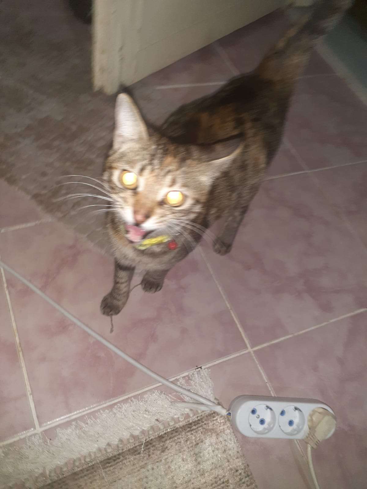 Sokakta sürekli miyavlayan,tasmasi olan bir kedi buldum.Hamile sanırım Bursa/Osmangazi Alemdar mahallesinde bahçeye aldık.Mama ve su koyduk.Umarim sahibi bulunur.