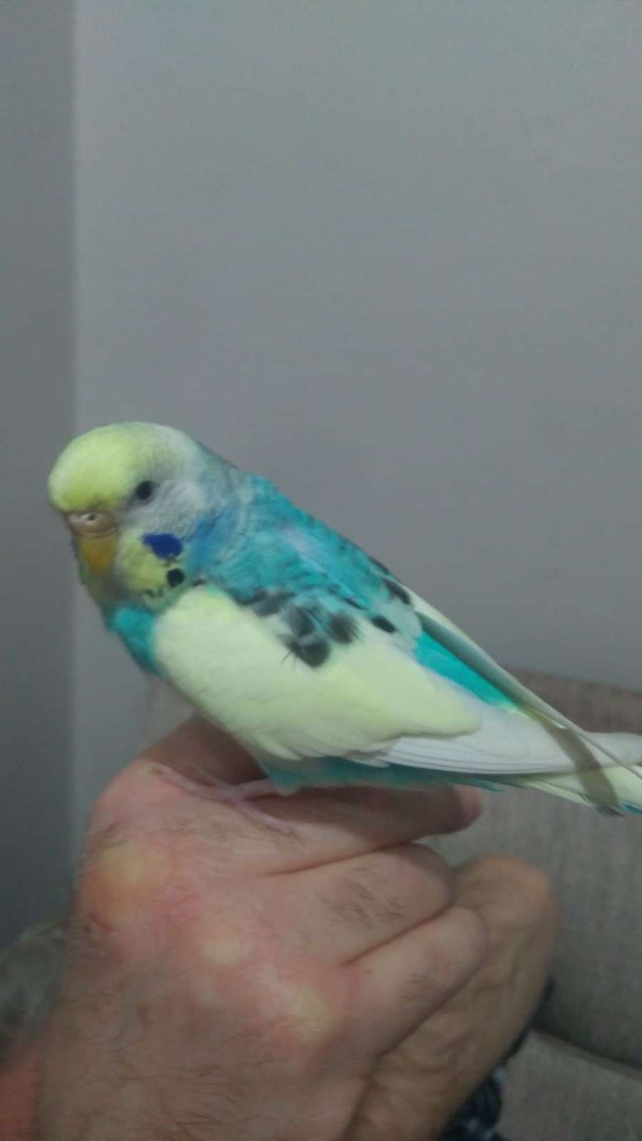 Rengi Turkuaz, kafası sarı, gövdesi beyaz. Söylediği kelimeler: çakır, paşam, cicikuş, aşkım, babacık.