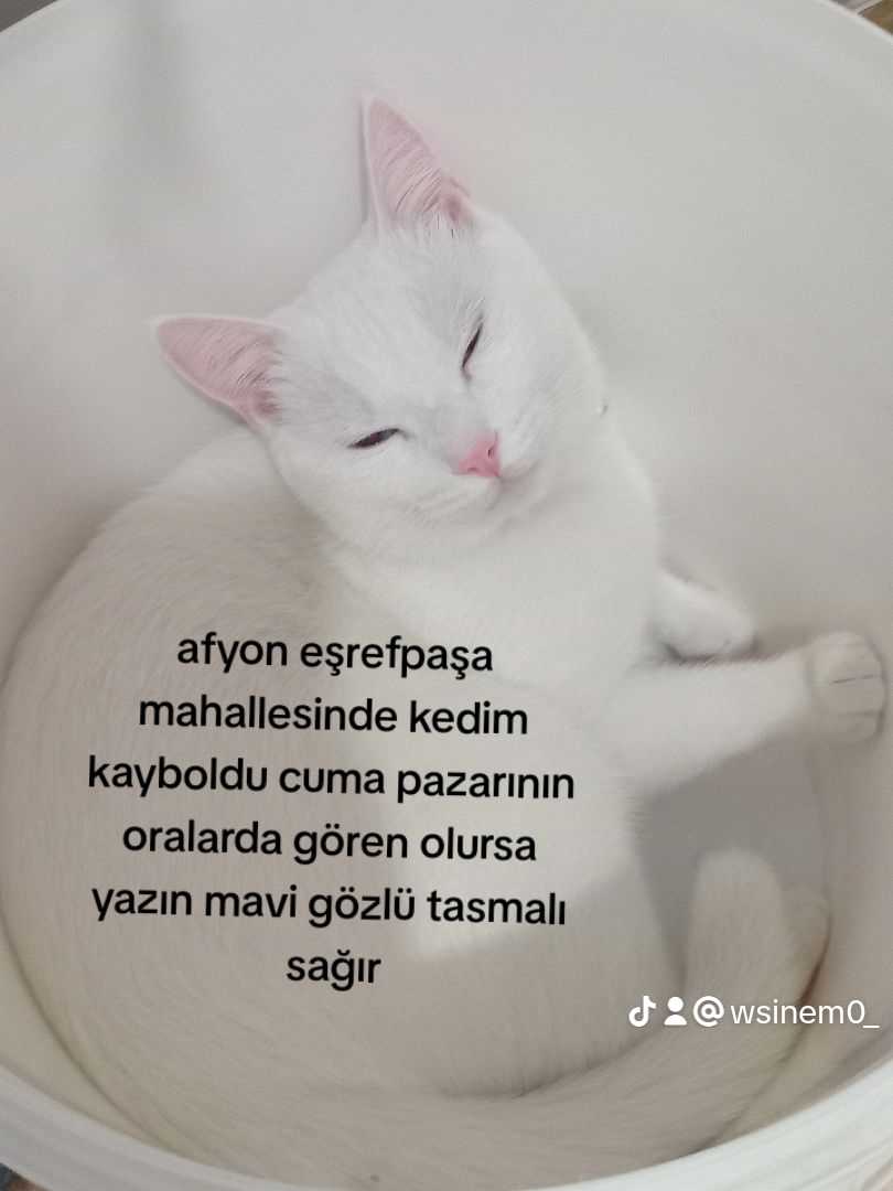 Afyon eşrefpaşa mahallesinde kedim kayboldu tasmalı tasmasında kuru kafa resimleri var. Kulakları sağır duymuyor. İsmi mırnav