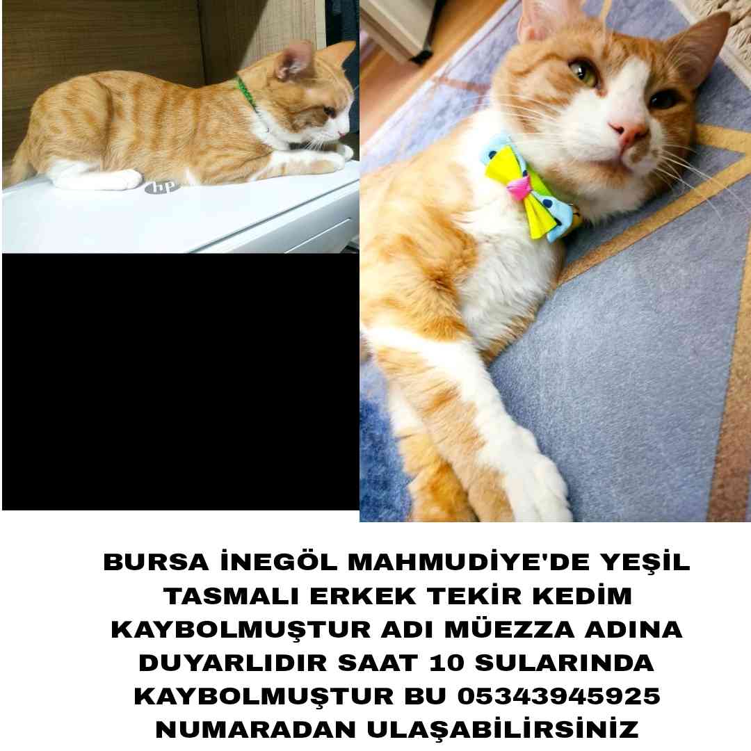 İNEGÖL MAHMUDİYEDE YEŞİL TASMALI TEKİR KEDİM KAYBOLDU