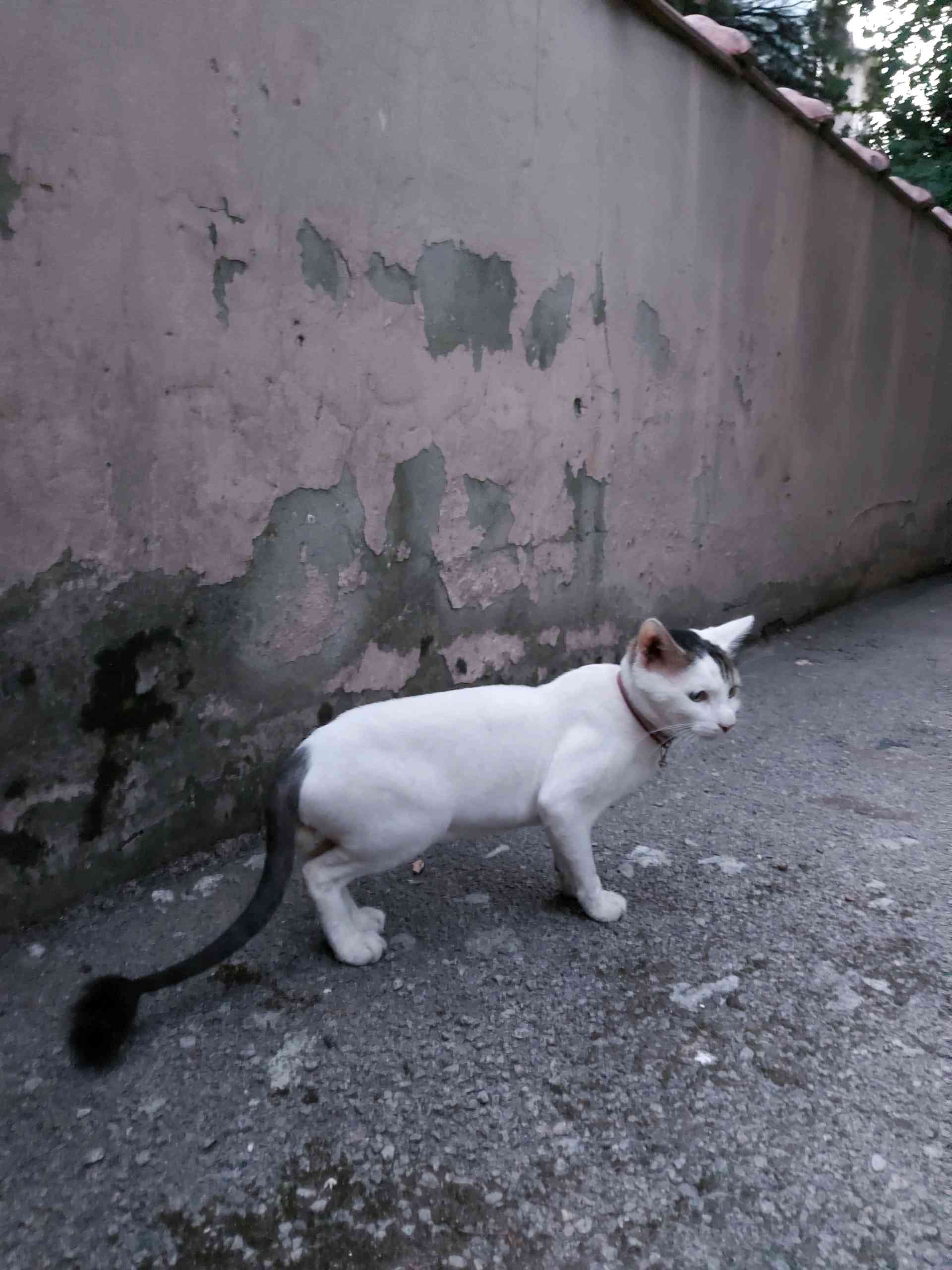 İki gündür bu yavruyu evimin önünde görüyorum. Ama çok ürkek olduğu için yanına yaklaşamadım bir türlü kaçıyor sürekli, yeni traş edilmiş tasması var ama tasmada isim maalesef yok.