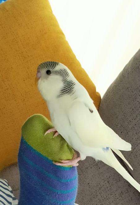 Beyaz renk alacalı sarı renkte mevcut kanat altları mavi konuşabilen ve araba alarm sesi çıkartıyor