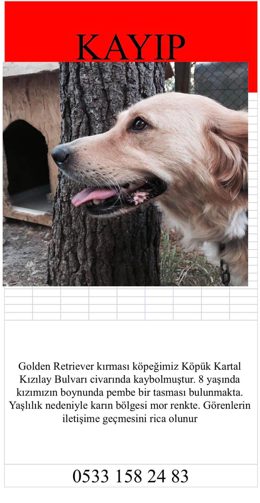 Kartal’da Kayıp 8 yaşında golden retriever