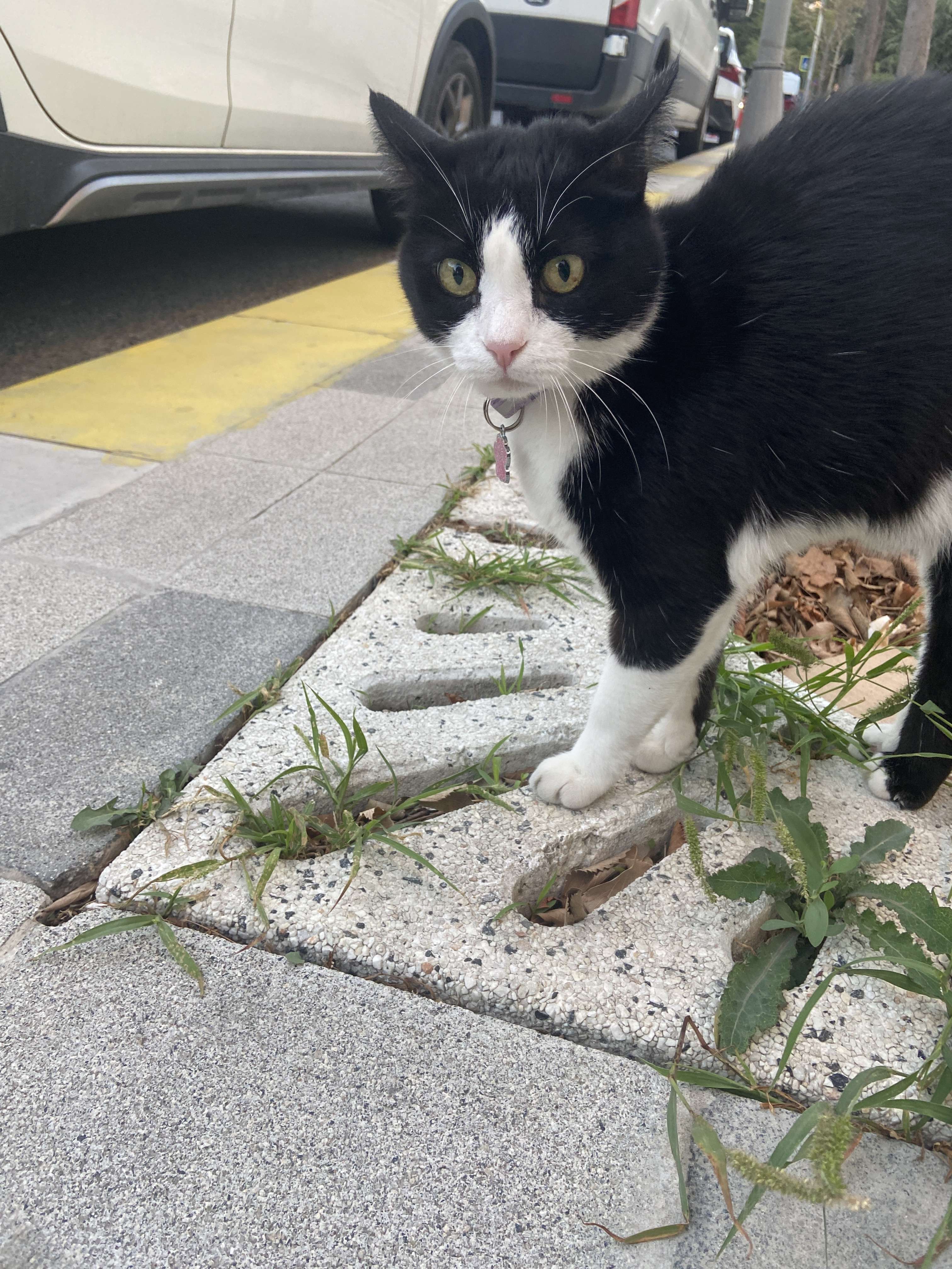 18.09.2025 19:05’te Beylikdüzü Semerkand CarrefourSa önünde tasmalı bir kedi buldum. Siyah beyaz. Pembe tasması var. Tasmada Şifo ismi yazıyor.