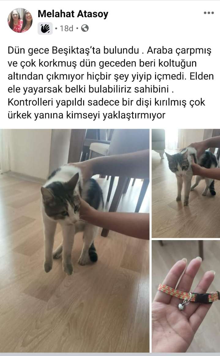 Dün gece saat 01:00'de beşiktaş taraflarında sokakta bulunmuş kedisini kaybeden varsa ulaşsın