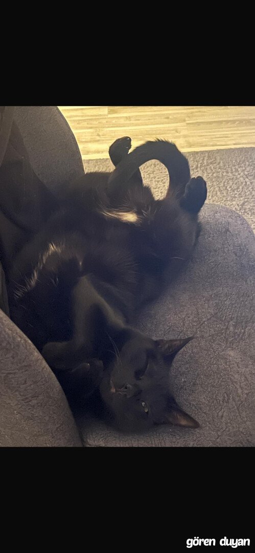 Kedimin adı Mickey. 4 yaşına girmek üzere, kısır, dişi. Çipi var. Etimesgut Süvari Mahallesi’ndeki evden kaçtı. Adına seslenince bakıyor. Siyah, tekir. Fotoğraflardan da görüleceği üzere karın kısmında beyazlıklar var. Diğer siyah kedilerden o şekilde ayırt edilebilir.