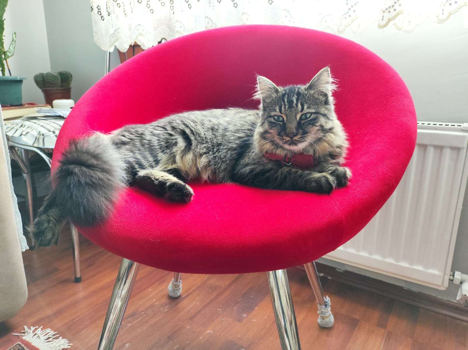 Kızımız Müzeyyen, 1 Ağustos akşamı Yanık Mahallesinde(Sapanca/Sakarya) kaybolmuştur. Sokaktan sahiplendiğim için tam yaşını bilmiyorum. 1 yaşında olduğunu düşünüyoruz. Çipi var ve kısırlaştırıldı. İsmine duyarlı. Kırmızı papyonu var ve kuyruğundaki tüyler bir hayli kabarık. Bu bölgede çok fazla yazlıkçı ve günübirlik tatilci olduğu için birilerinin görüp almasından şüpheleniyorum.