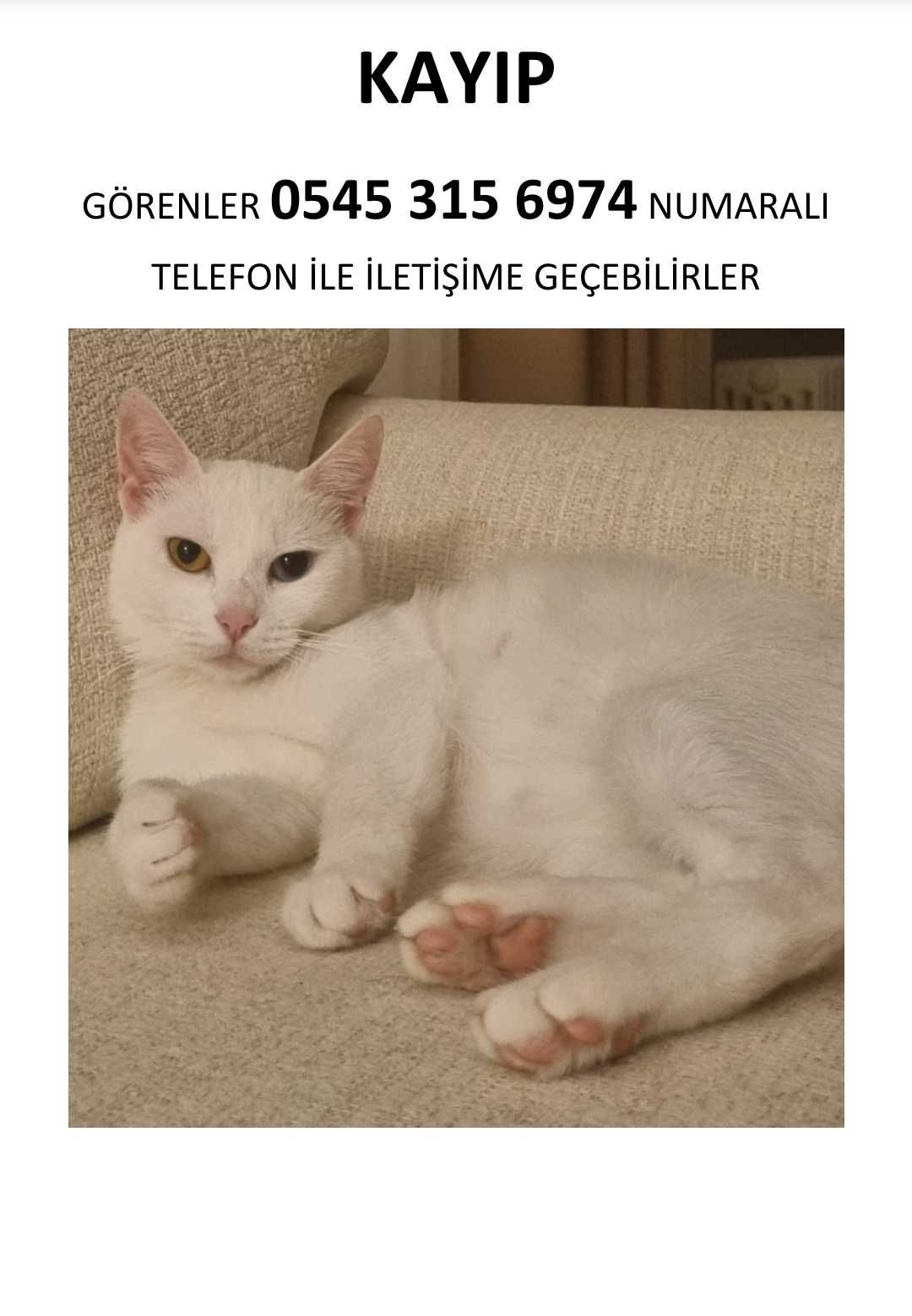29 Temmuz gece, kedimiz İzmit Şirintepe Mah. Asuman Sok. Civarında evden kaçtı. Görenlerin insanlık adına bize dönmelerini rica ediyoruz. Van kedisi, 5 yaşında.