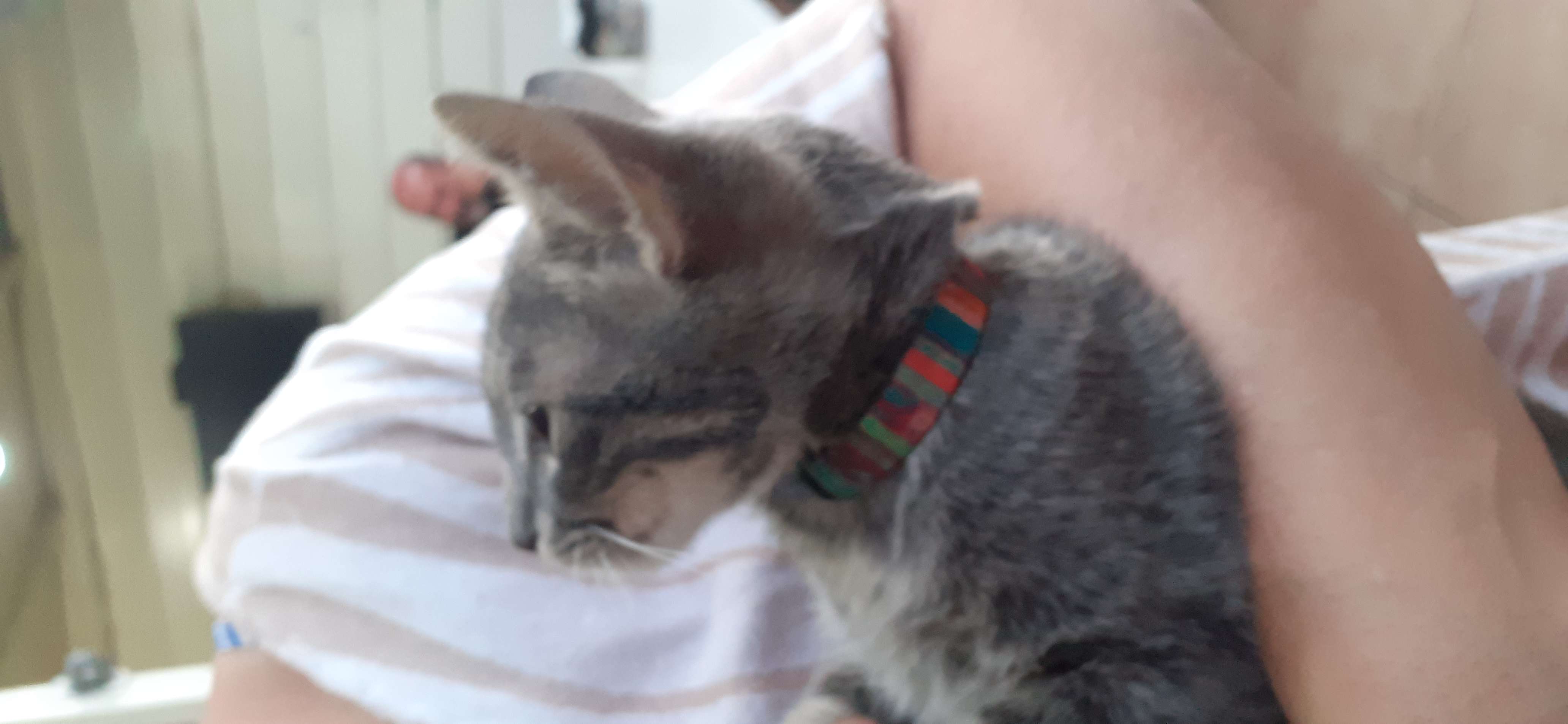 Çanakkale Mıhlı Mahallesi Efsane Kokorec mekaninin önünde bulundu. Kedinin üzerinde tasma var.