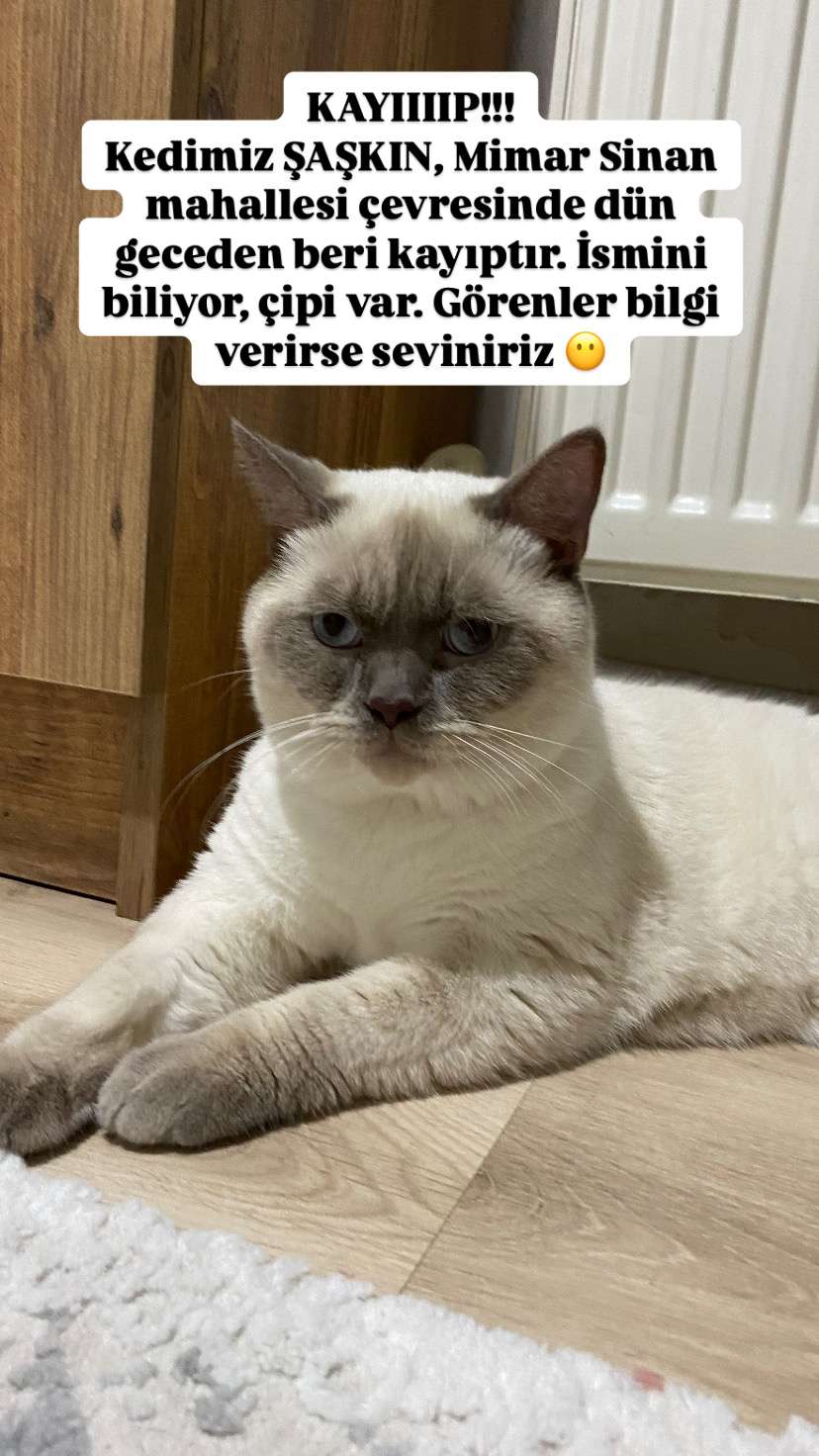 7 Ağustostan beri kayıp. Çipi var. 11 aylık erkek kedi. Adı ŞAŞKIN… ismini biliyor…