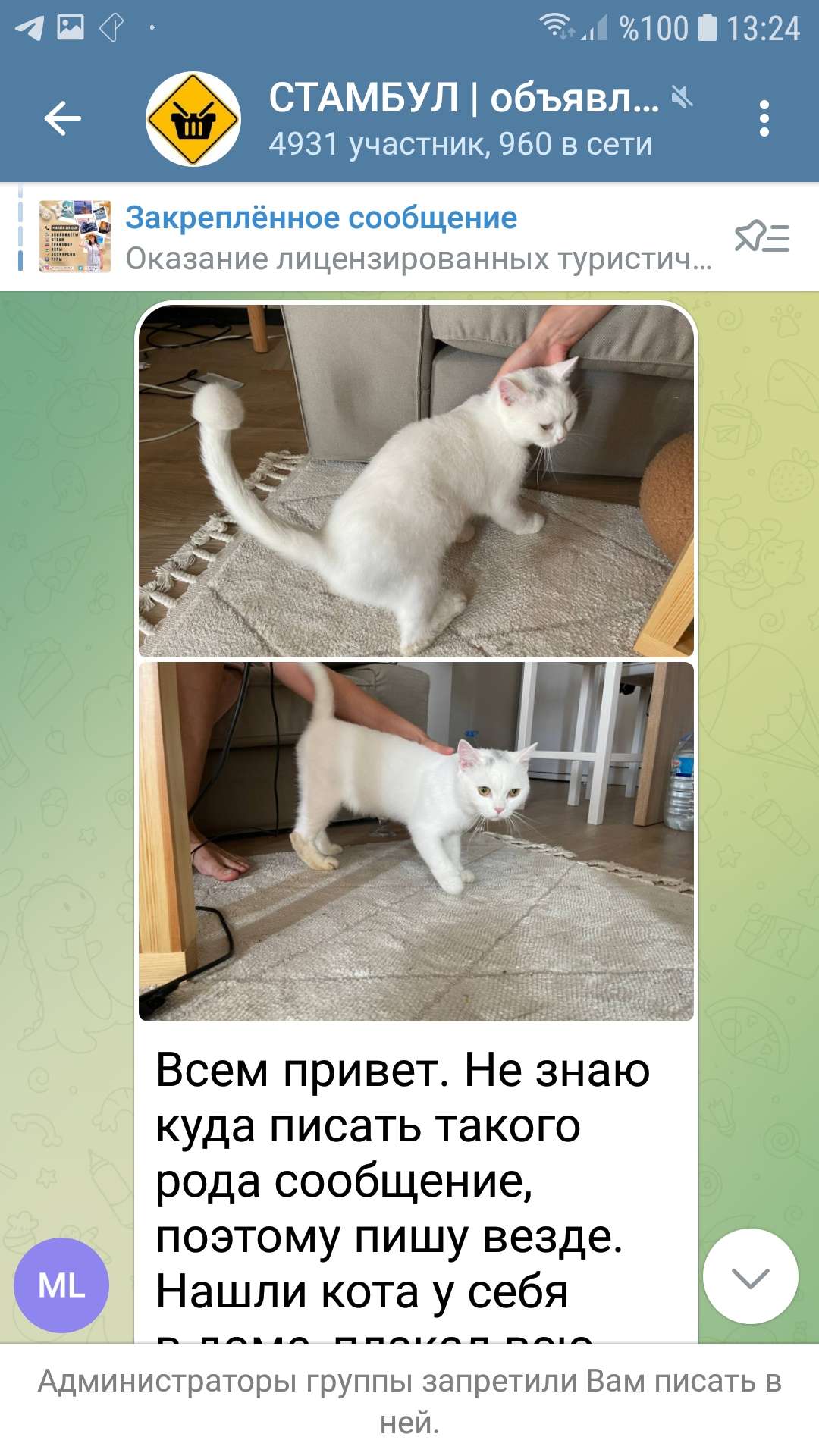 Apartmanimizda kedi bulduk! Erkek, beyaz, tıraşlarmış! Kafasinda lekeler var koyu renkte! 13/ 14 agustos