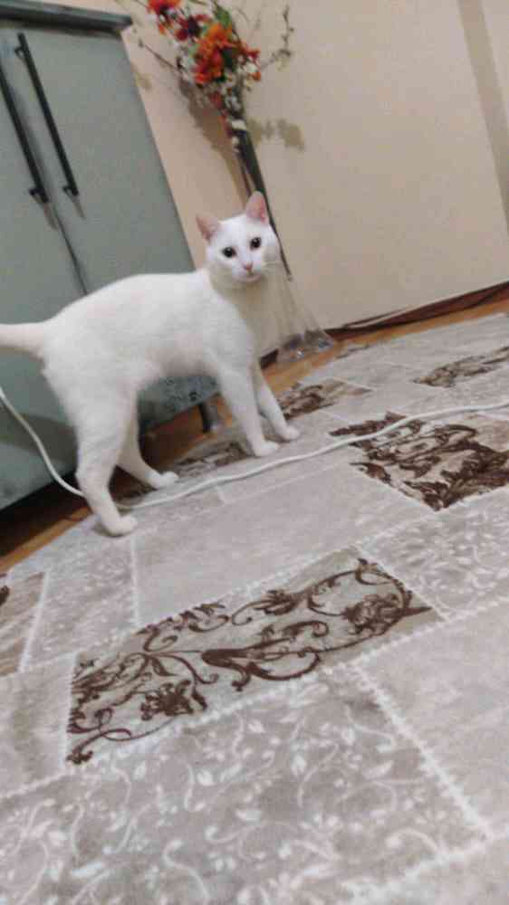 bembeyaz bir kedi hırçın ve dışarıyı bilmeyen insanlardan kaçan kısır erkek belirgin bir özelliği yok