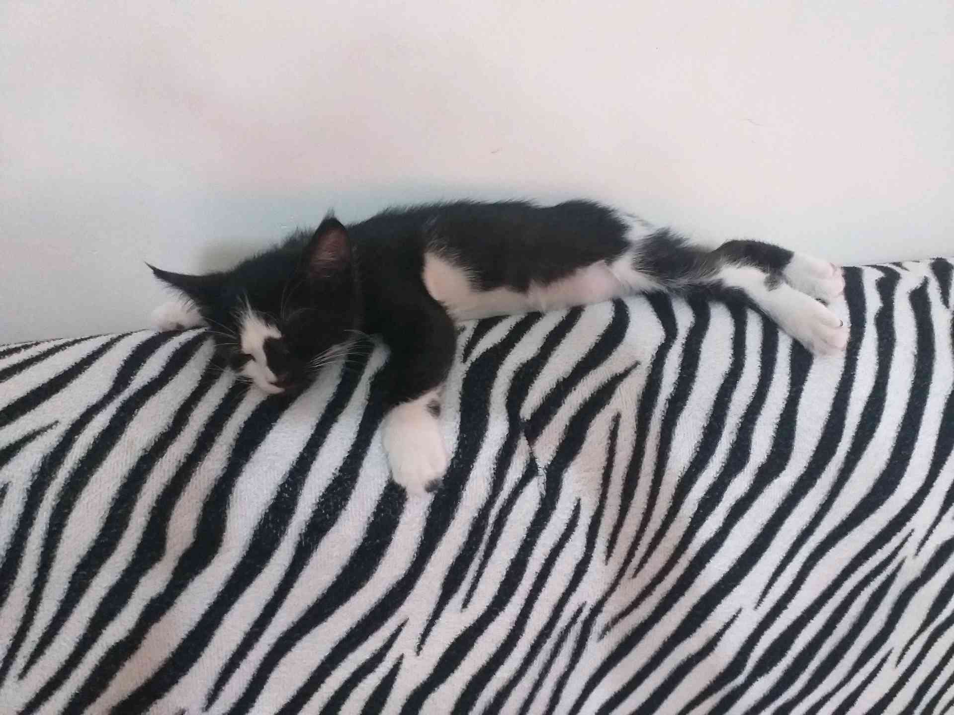 siyah beyaz bıyıkları kesilmiş 2 aylık erkek kedi