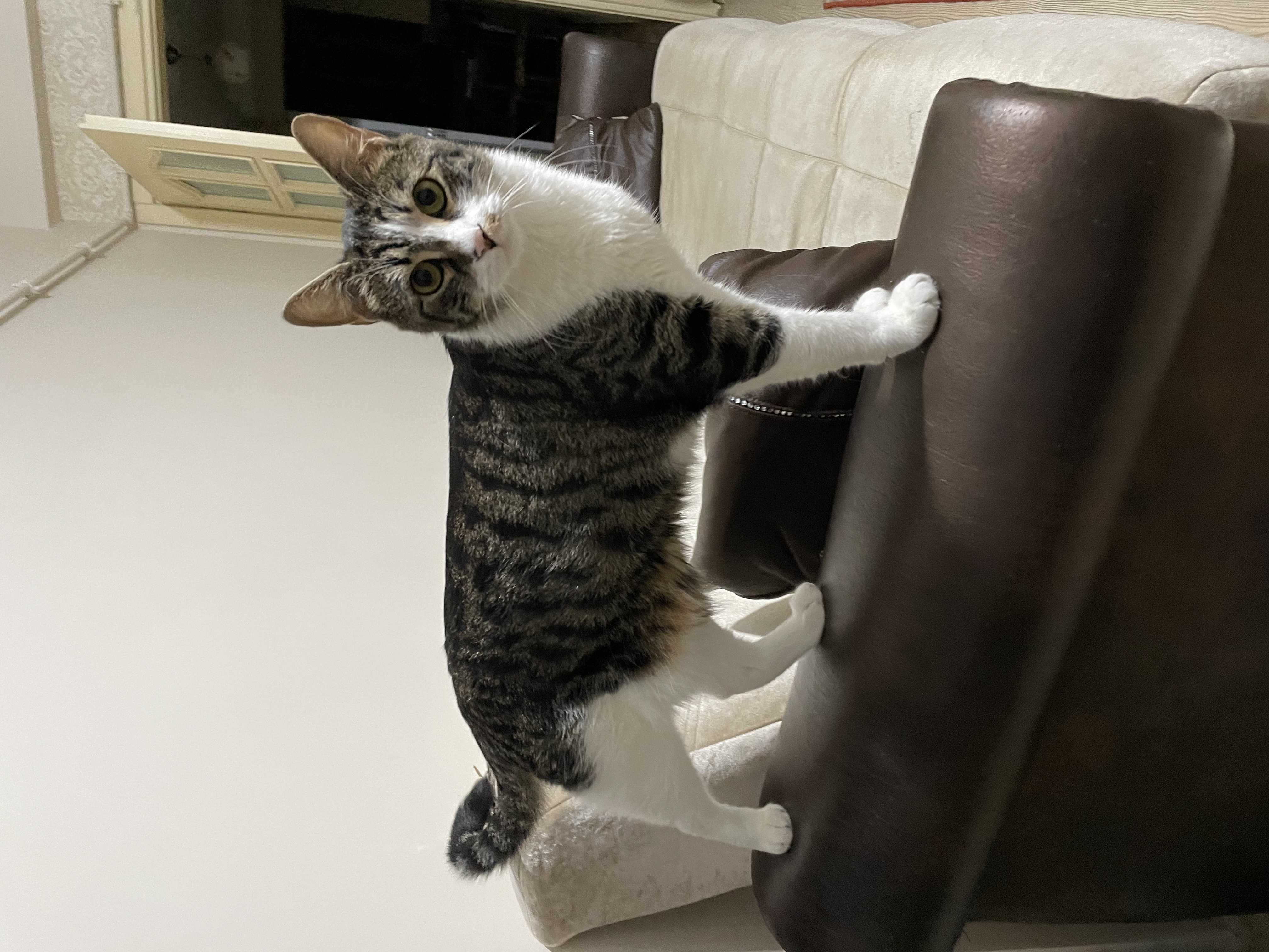 Çipli, Erkek, Kısır, 3 yaşlarında, 5 kg civarı, Tekir, Kendini sevdirmez, Burnunun Sol kısmında benek gibi bir lekesi var, patileri pembe, ağzı beyaz, gözleri yeşil, ön sağ patisinin iç kısmında küçük bir siyahlık var.