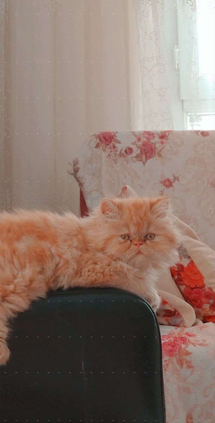 sarın tonlarında rengi var göz akıntısı var bıyığında bir tutam siyah boyık var 4-5 aylık dişi herhangi kuru mamayı salladığınızda yanınıza gelir