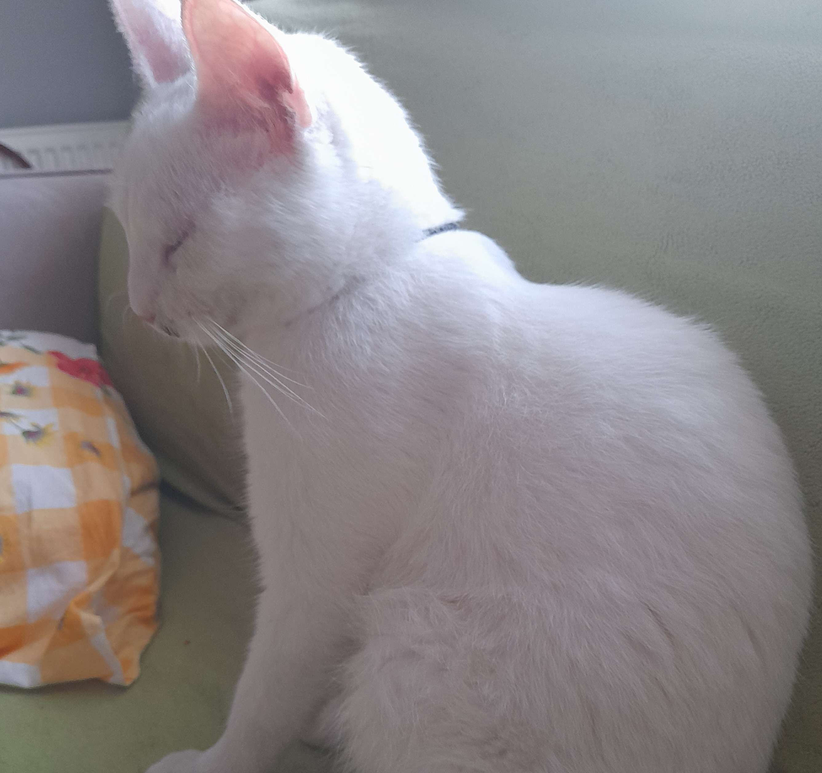 Derince vergi dairesi önünde beyaz erkek van kedisi bulunmuştur.boynunda bileklik şeklinde bir tasma var