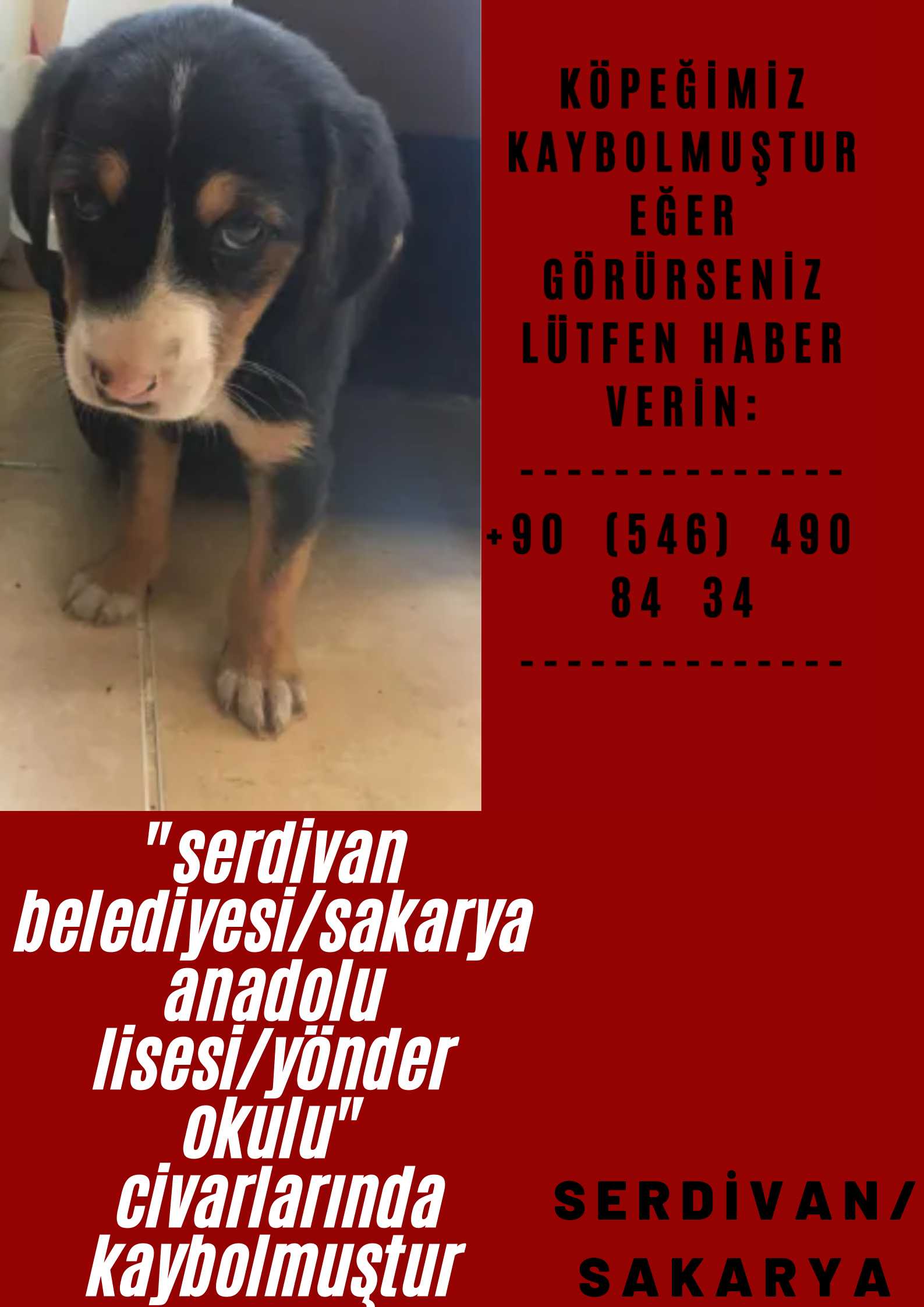 Köpeğimiz kaybolmuştur eğer görürseniz lütfen haber verin acilen bulunması gerekir