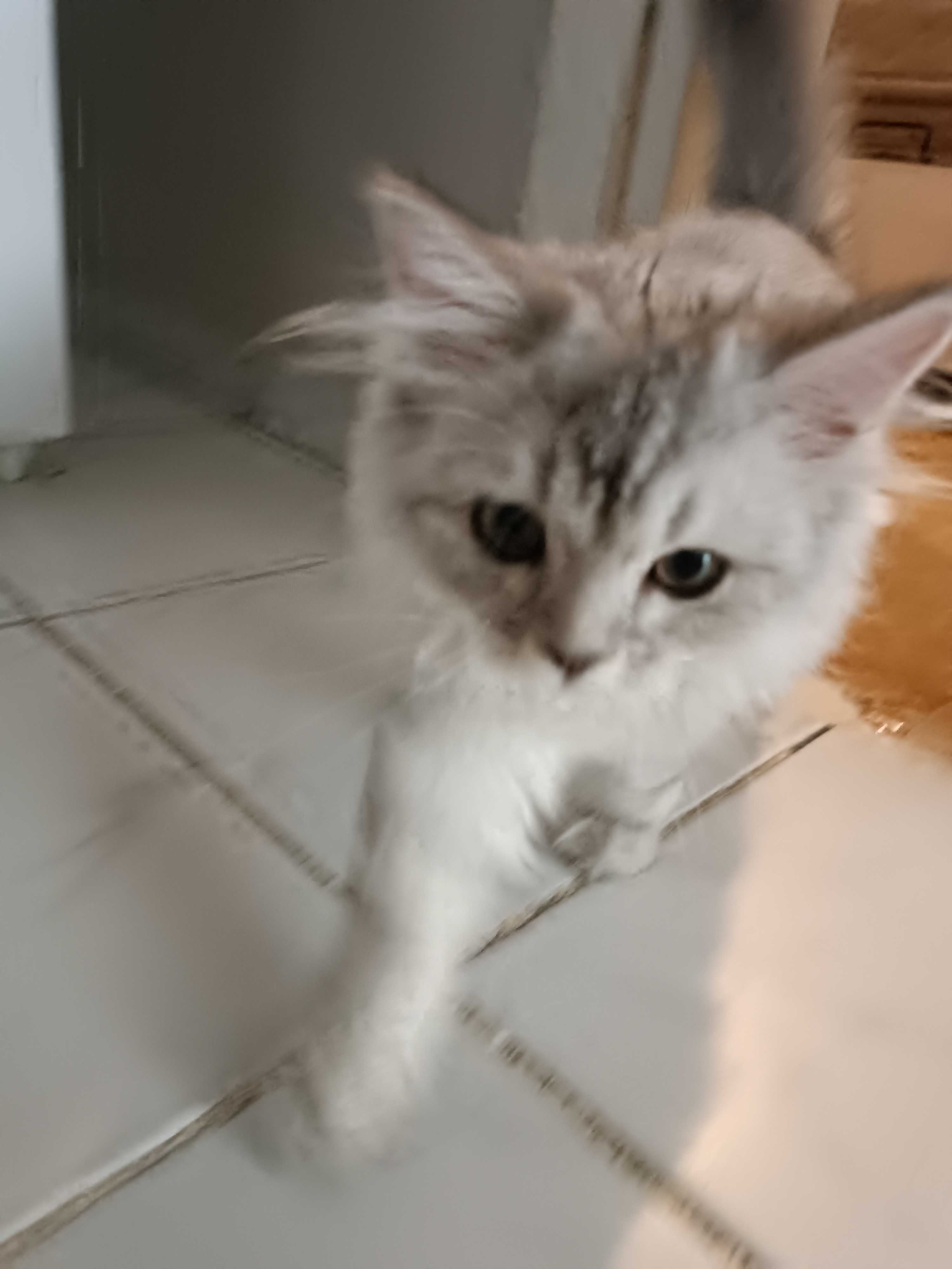 Mehmet Akif Mahallesi'nde bir evin kapısında dolanırken görülmüş. Bana geldi cipine baktirdim ama yoktu. Yaklaşık 4 aylık civarı. Yeni kaçmış belli. Tertemiz ve eve insana çok alışık. Beyaz üzeri hafif gri renkleri var. Sahibinin bir an önce bulmasını bekliyoruz
