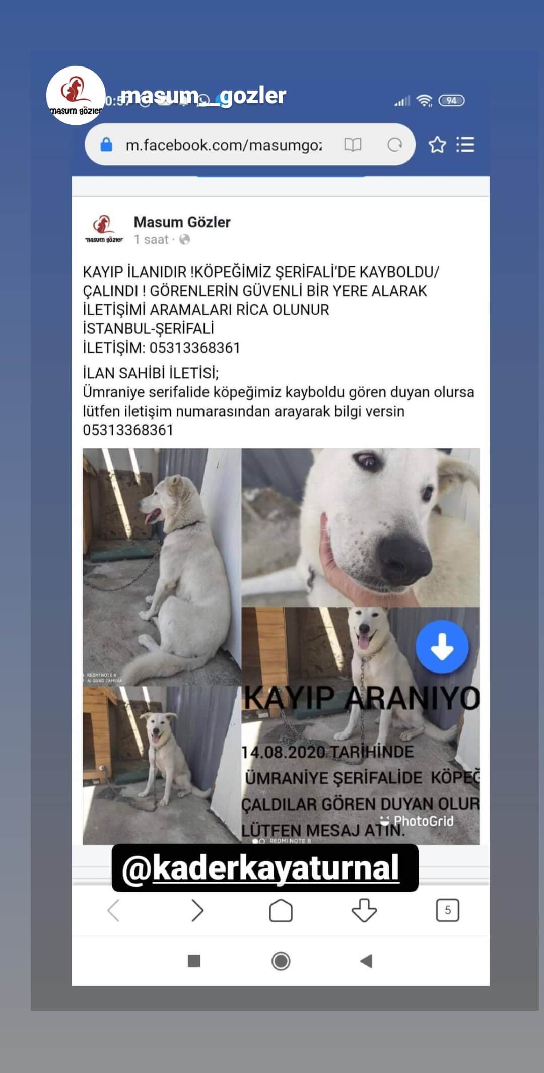 akbaş cinsi 1.5 yaşında beyaz 13.agustos ta kayboldu Ümraniye şerifalide çaldılar gören duyan olursa lutfen ulaşın lütfen
