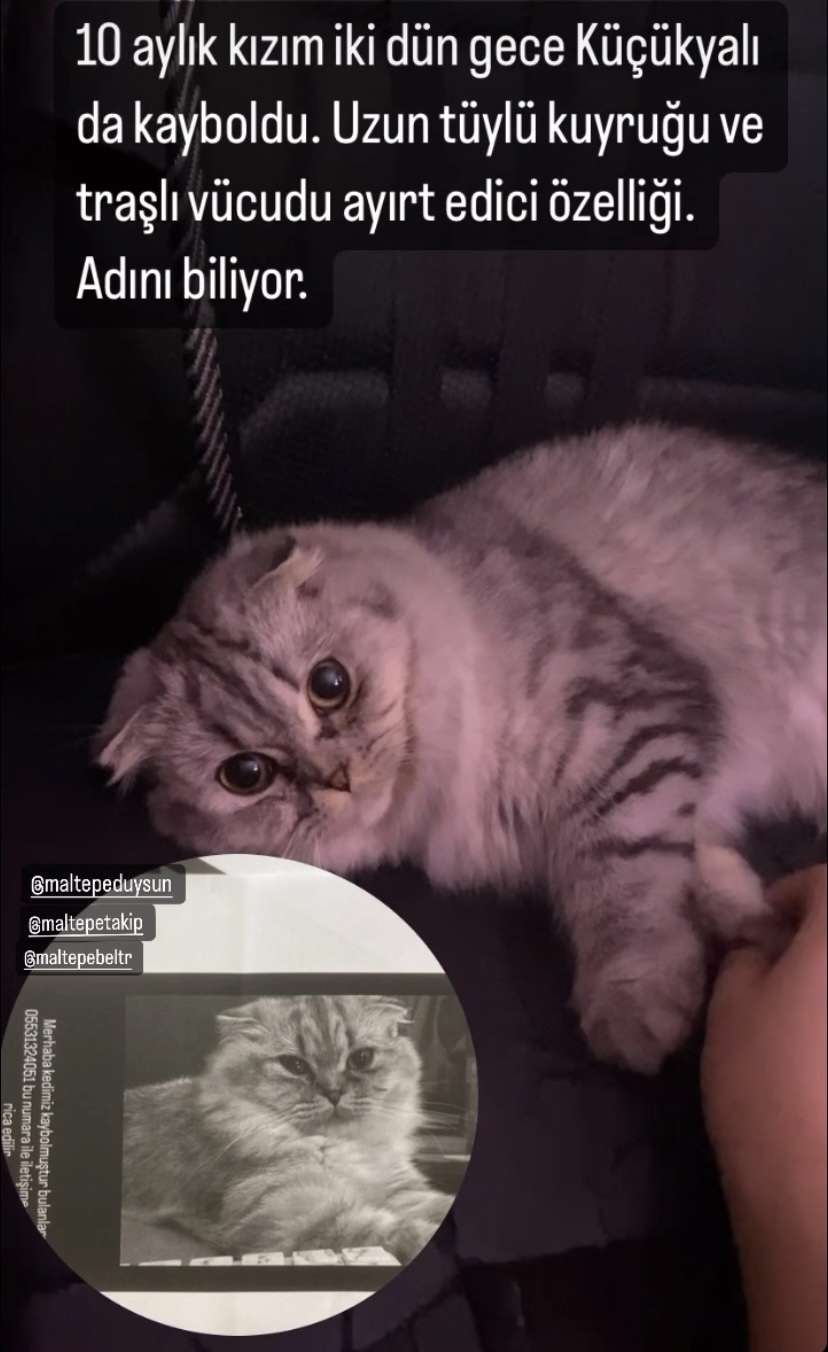 Kiki ya da iki adıyla seslenince gelir, Maltepe Küçükyalı mine sokakta kayboldu, görenler lütfen ulaşsın. Kızımızı her sokakta aradık. Görüpte evine alan olmuş olabilir geçici olarak. İlanı görürseniz instagram : seysdii adresinden ulaşabilirsiniz.????????????????