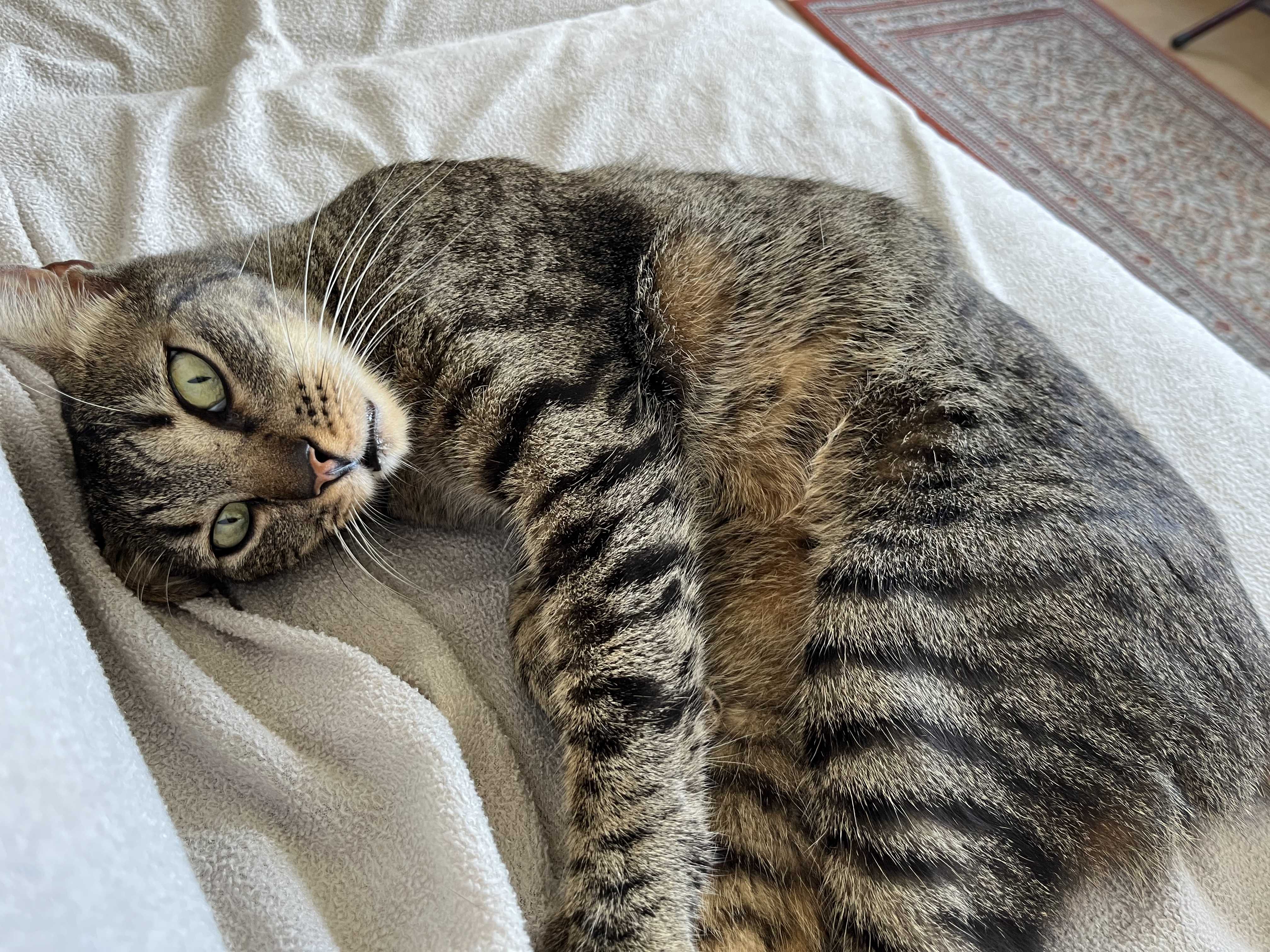 4 yaşında dişi tekir, yeşil gözlü, zayıf ve kısa tüylü. Boynunda ve arka ayaklarının ucunda beyazlıkları var. Kulağı çentikli. Miyavlamayı beceremiyor. Düzenli dışarı çıkıp gelen kedim 1 Temmuz 2024 tarihinde Beyoğlu Sütlüce Mah. Muhlis Bakkal sok. ta kaybolmuştur. Dışarı çıktı ve hala gelmedi. Görenlerin iletişime geçmesi önemle rica olunur.