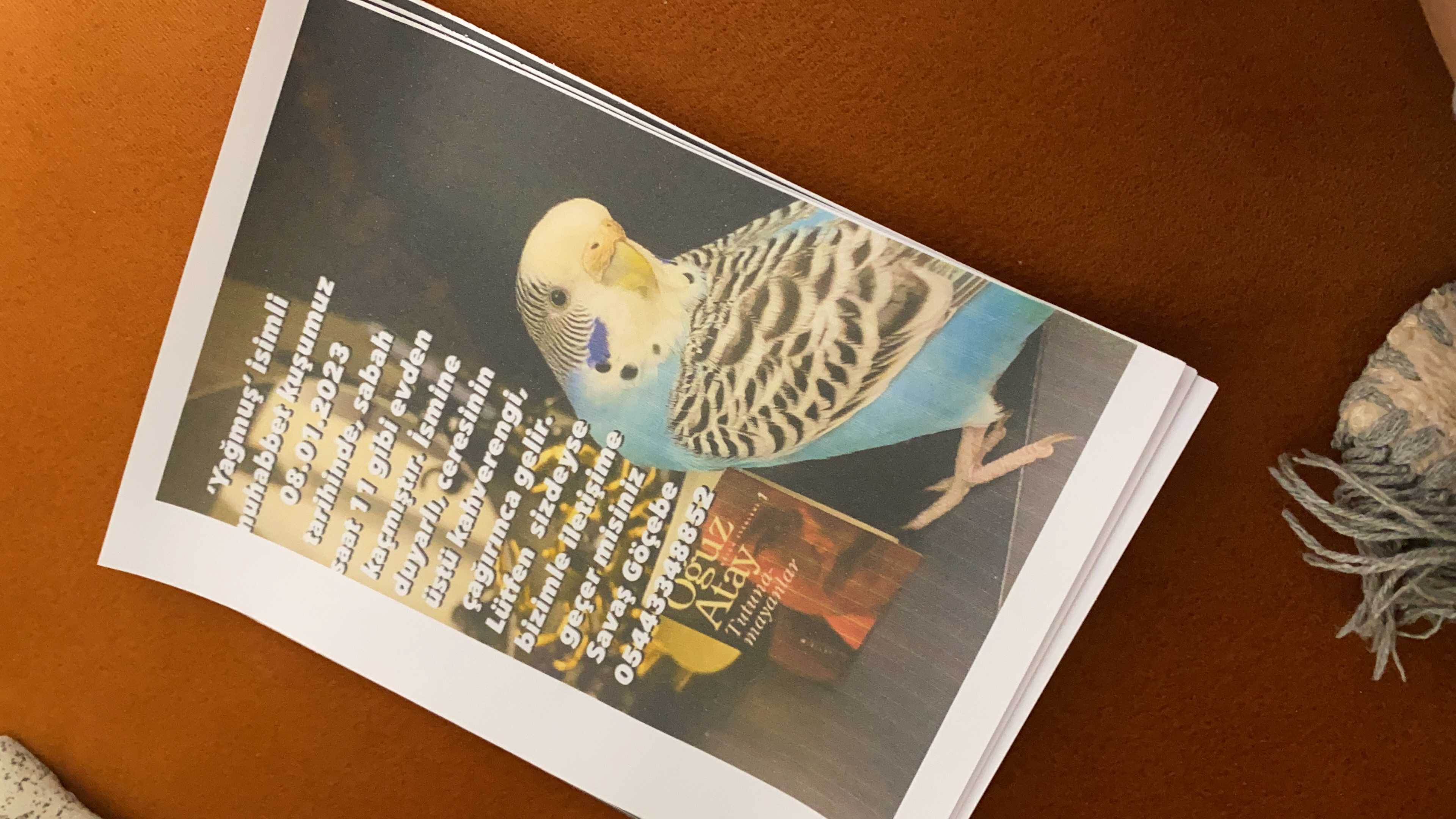 ‘Yağmuş’ isimli muhabbet kuşumuz 08.01.2023 tarihinde, sabah saat 11 gibi adana cukurova Toros mahallesindeki evimizden kaçmıştır. İsmine duyarlı, ceresinin üstü kahverengi, çağırınca gelir. Lütfen sizdeyse bizimle iletişime geçer misiniz.