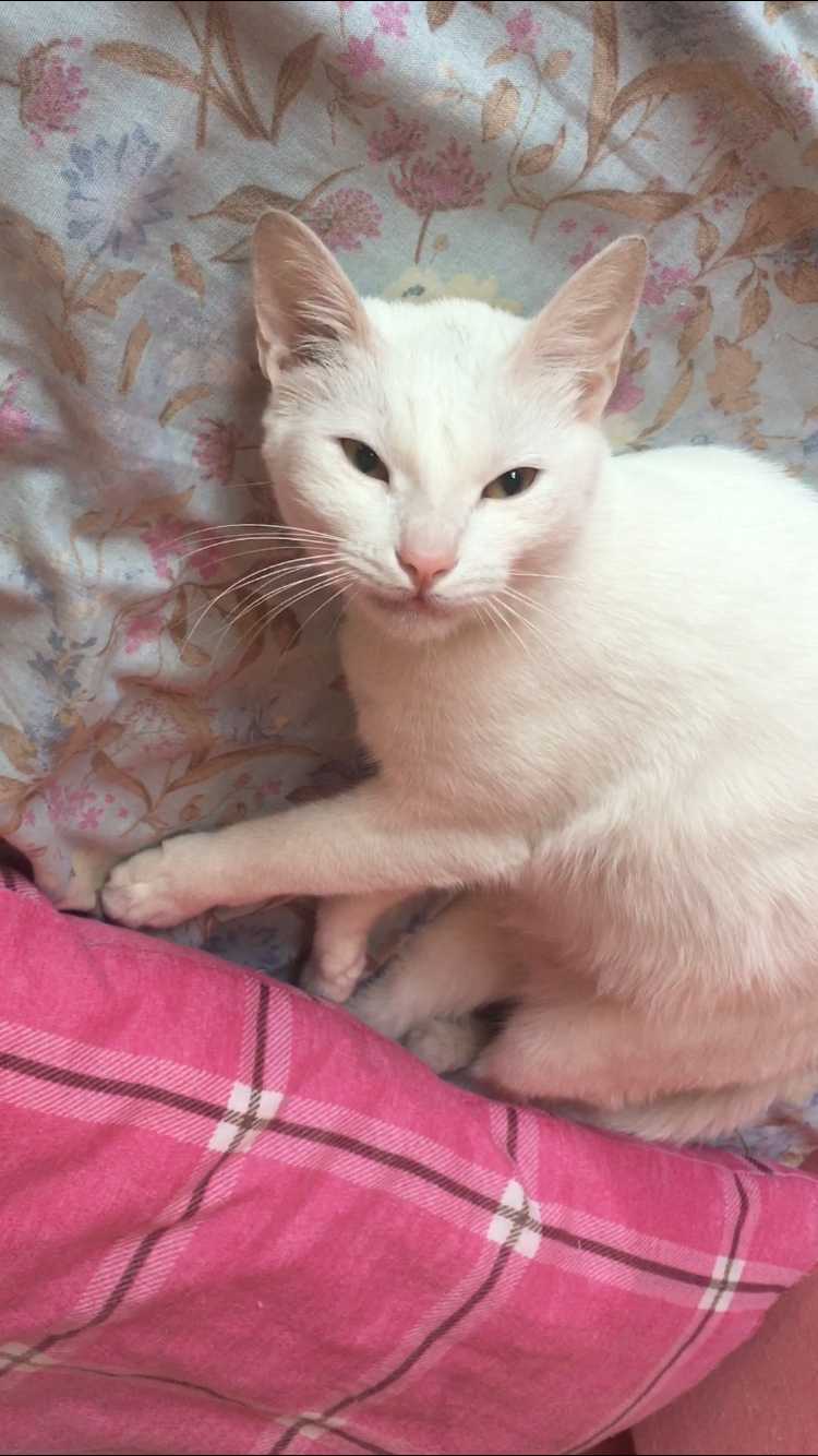 Balkondan düşmüş olma ihtimali var lütfen gören duyan ulaşsın. bembeyaz tasması yok gözleri sarı