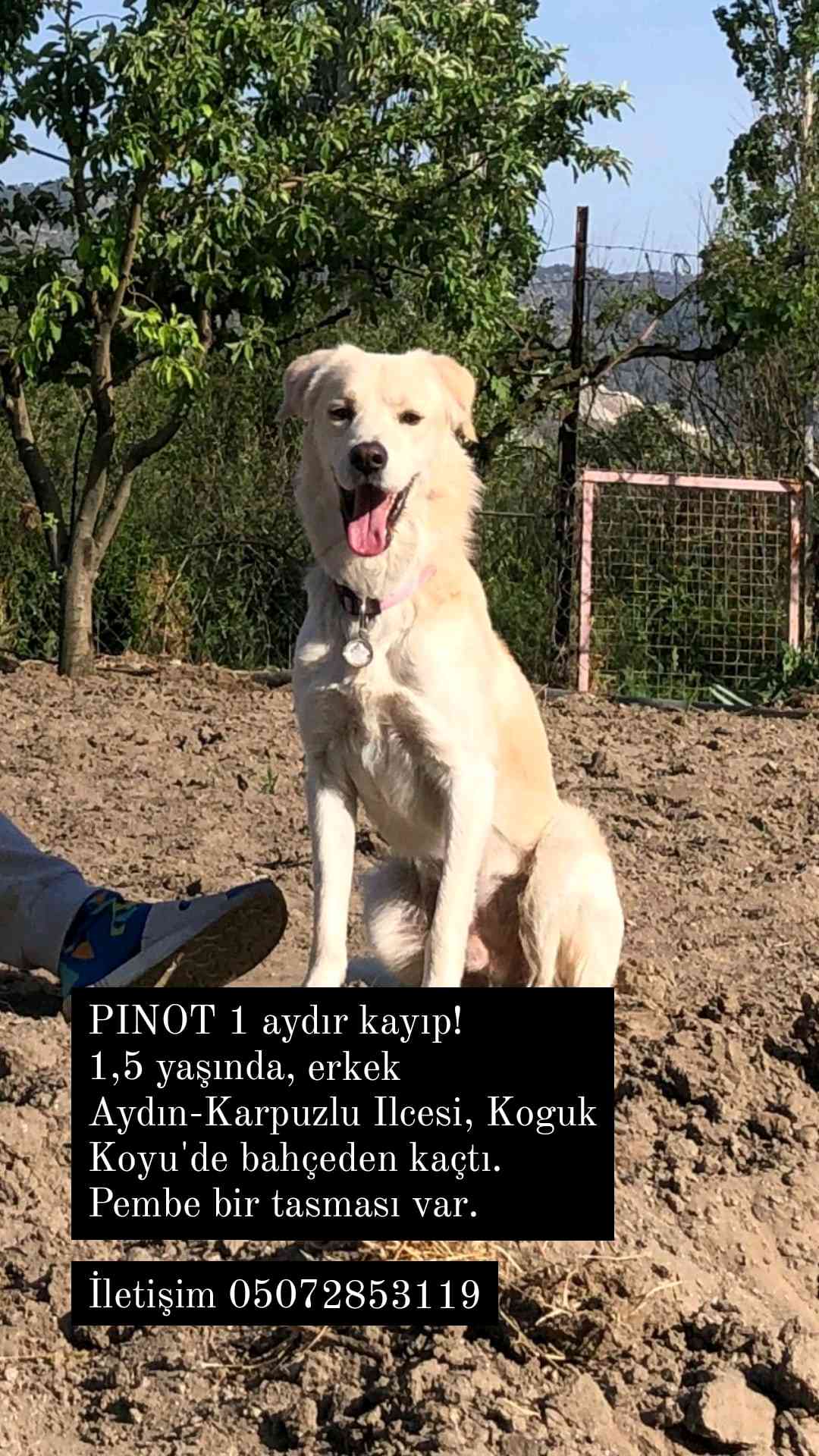 Pinot Erkek 1,5 yaşında, kısır. Koğuk Köyü'nde bahçeden kaçtı. ürkek bir yapısı var. adını biliyor.