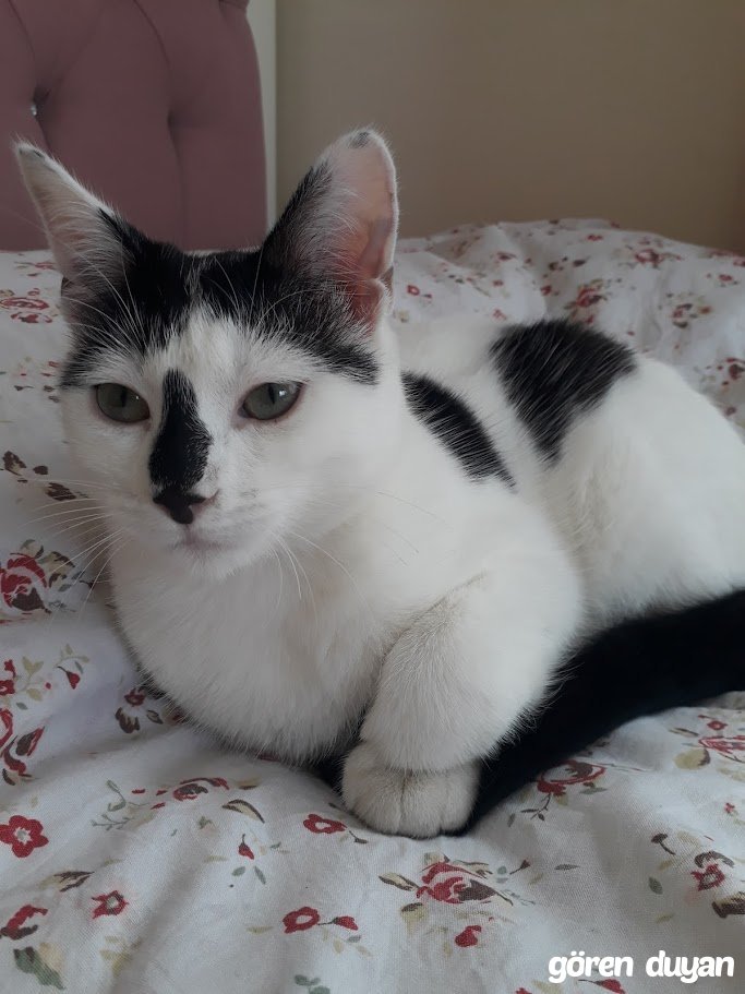 Vücudunun her iki yanında 2'şer siyah büyük benek, Burnu, alnı, ensesi ve kuyruğu siyah, kalan kısımları beyaz, 3 yaşında kısırlaştırılmamış erkek kedi, 12 Mart 2026 tarihinde saat 15:00 sularında en son bahçede görüldü. İsmini biliyor ama insanlara yaklaşmıyor. 2 haftadır kayıp olduğundan dolayı zayıflamış olabilir! Bahçenize girmiş, sıkışmış ya da saklanıyor olabilir. Lütfen vaktinizi ayırıp etrafınıza bir göz gezdirin. Çok teşekkür ederim..