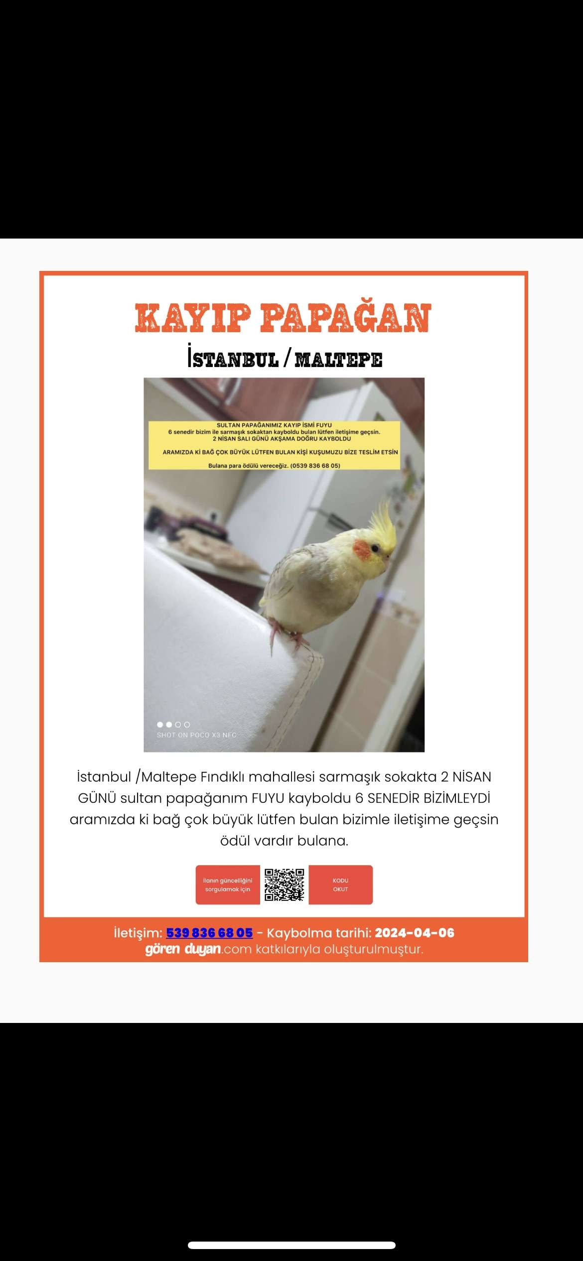 2 Nisan iftar vakti kafesi düştü korkup uçtu . Bir evin camına balkonuna yorulup konacağını düşünüyoruz. Fındıklı mahallesi SARMAŞIK SOKAKTAN uçtu . Eğer bulan kişi veya çevresinden böyle bir duyum alan varsa lütfen kuşumuzu bize teslim etmenizi rica ediyoruz. BULANA PARA ÖDÜLÜ VEYA KUŞU SEVDİYSE AYNI KUŞTAN ALACAĞIZ. Lütfen duyarlı olalım hayvansever ve merhamet sahibi olanlar bizi anlayabilir.???? Ailecek yavrumuza kavuşmanın özlemiyle bekliyoruz…
