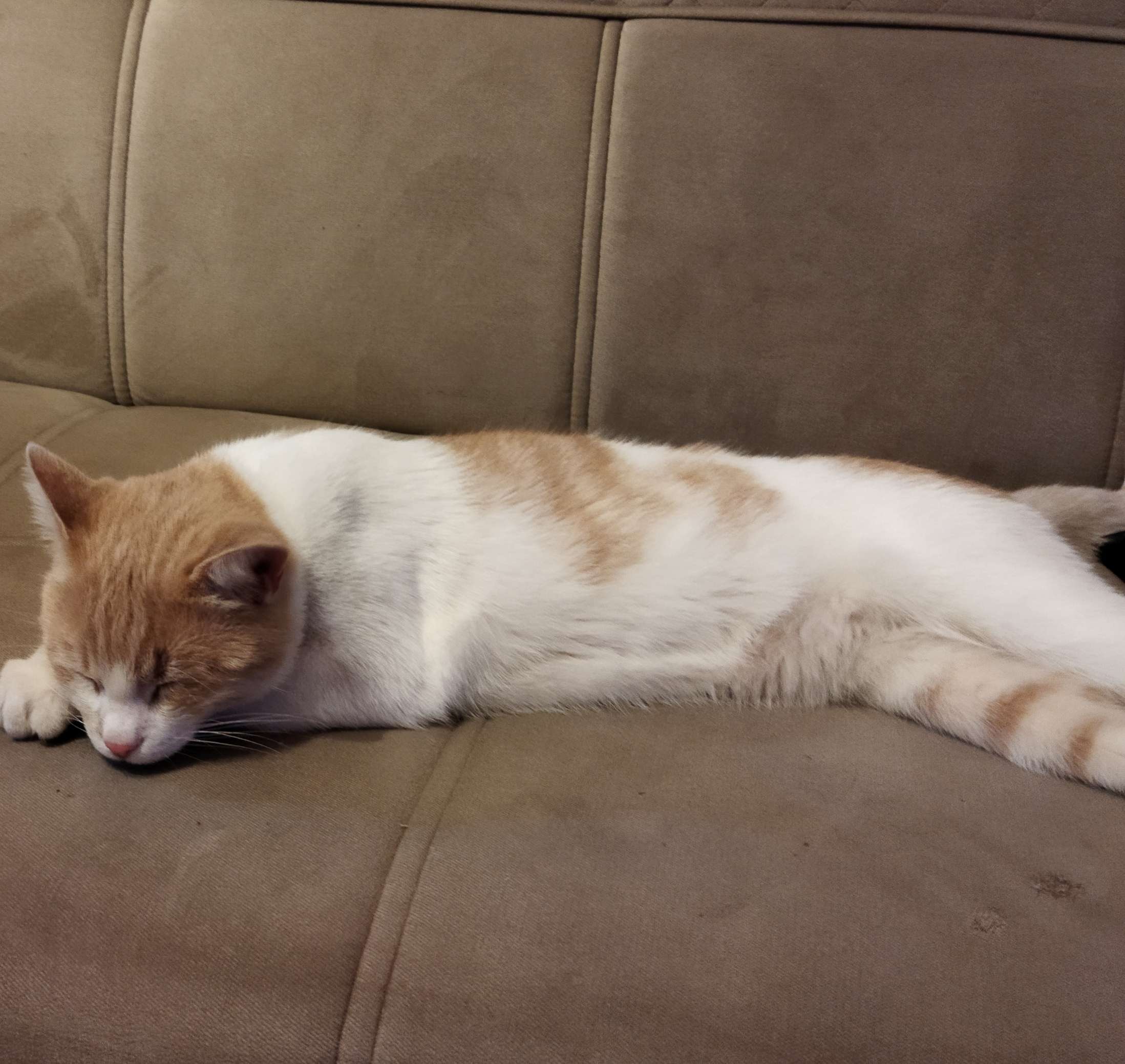 Sarı beyaz erkek kedi. Pamuk gibi. Taşması var.