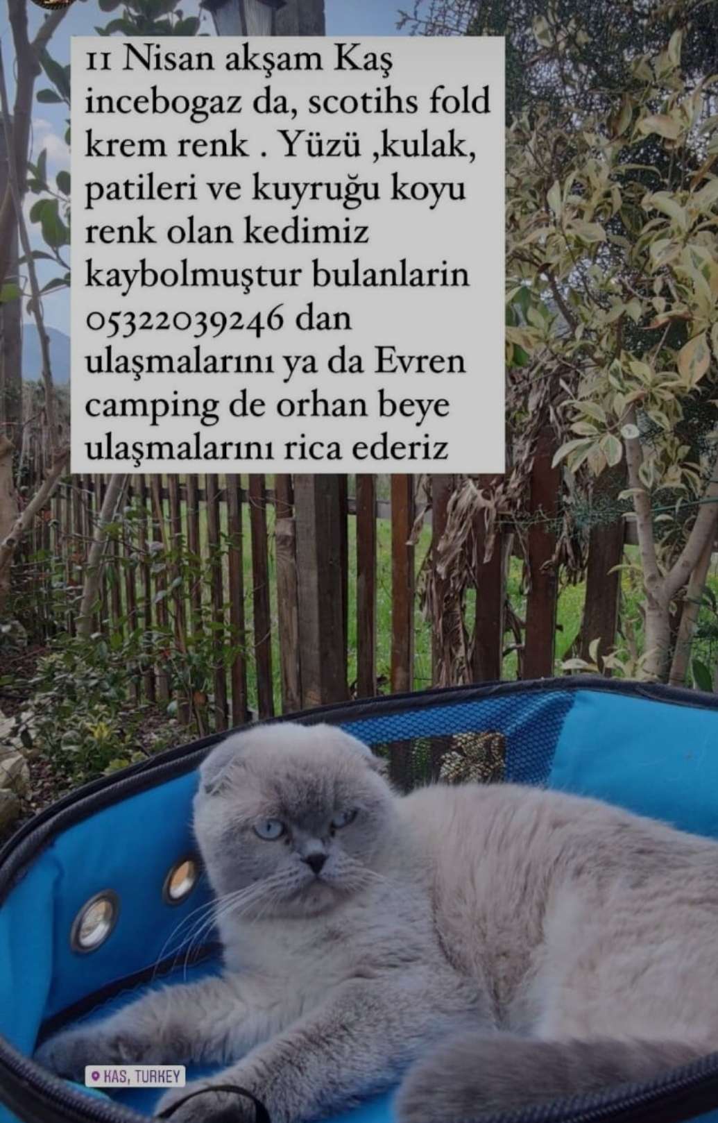 Antalya Kaş incebogaz da scotish fold krem rengi dışı lima isimli kedim kaçtı gören veya bulanların