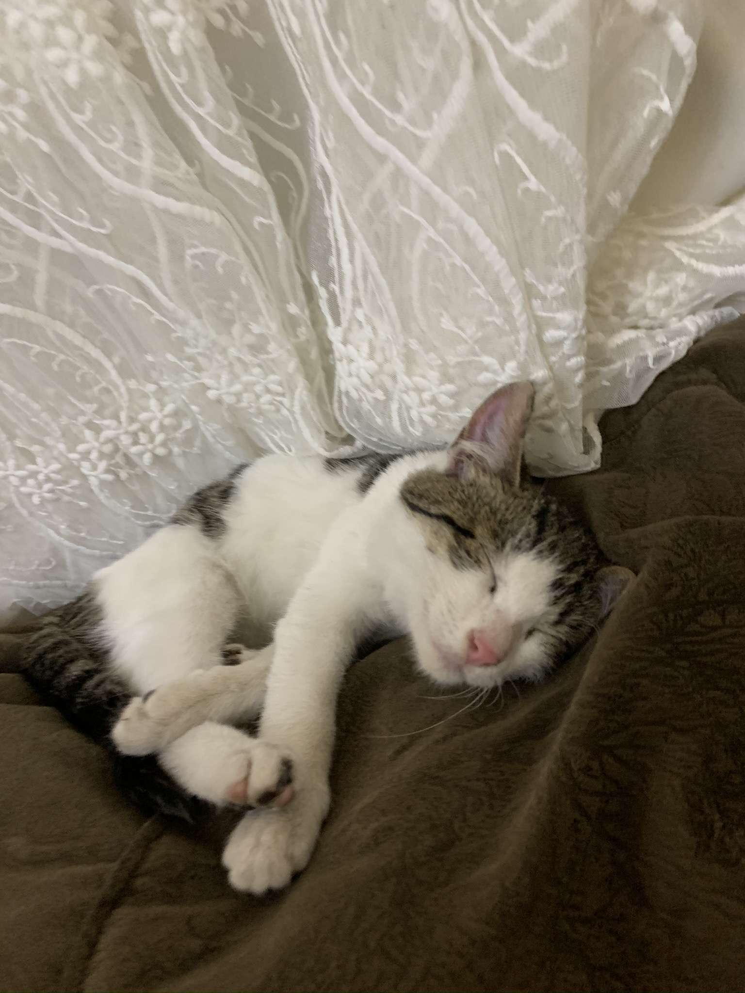 beyaz, kahverengi benekleri var