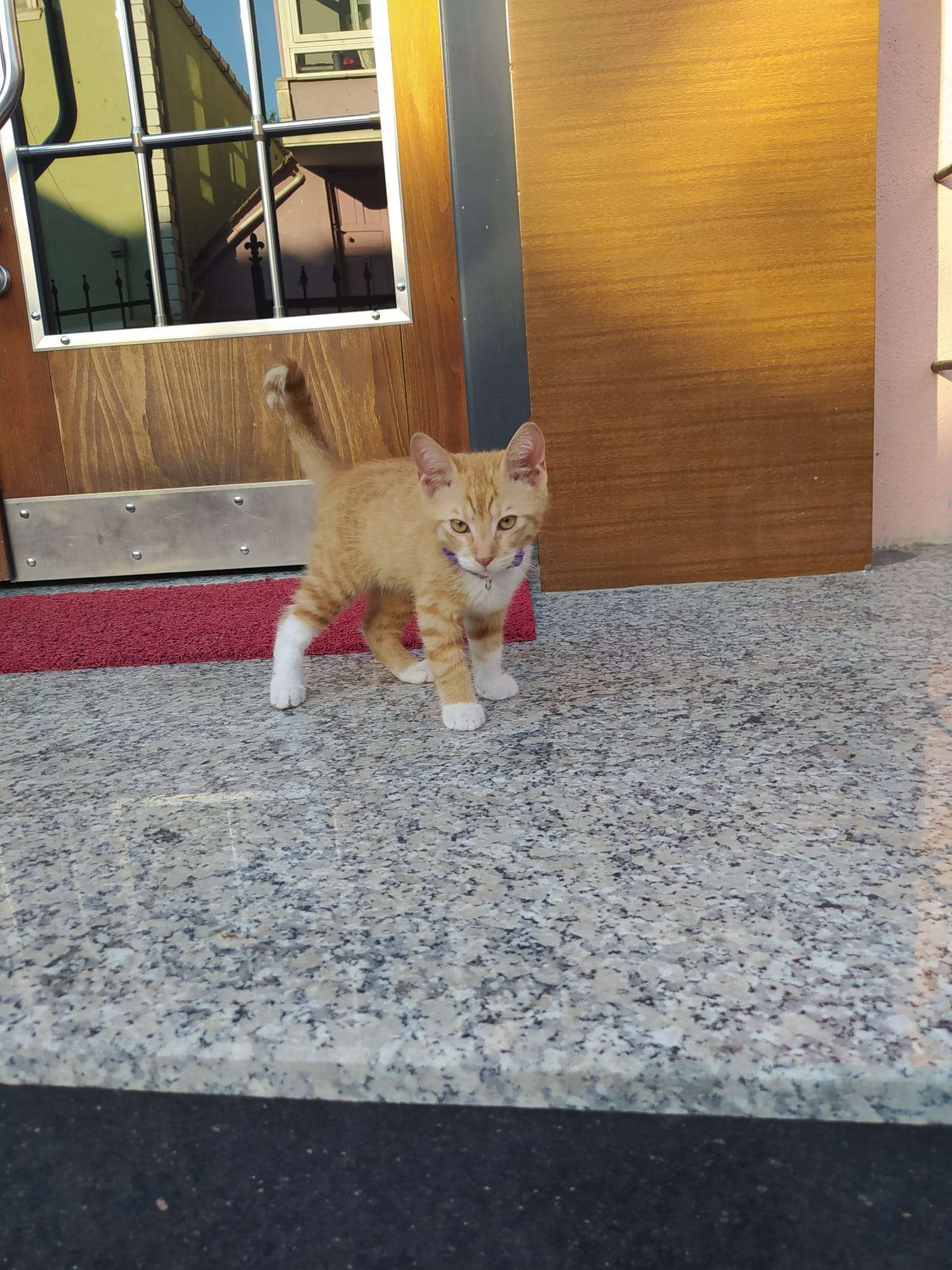 Bulgurlu mah. Atalar sok. No:20'de bulunan binamız önünde resimdeki yavru kediyi bulduk. Tasmasinda numarası yok.