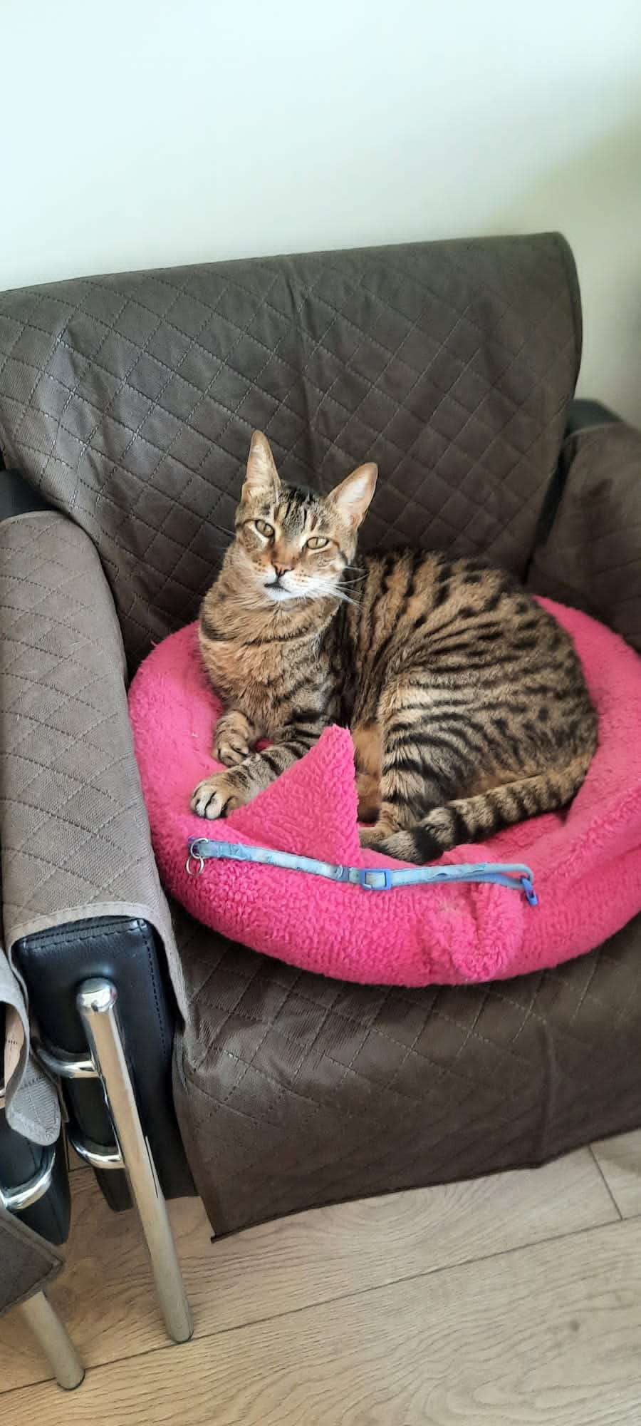 10 yaşının üzerinde olduğunu düşündüğümüz erkek tekir kedi ilk olarak Bağlıca'da bulunmuş. Boynunda mavi eski bir tasma varmış, detaylı görünsün diye fotoğrafa açık halini ekledik. Belkide başta tasması yoktu, el değiştirdi başkası taktı bilemiyoruz. Sahibi bulunamayınca, bulan kişi Üniversitede çalıştığı için Fakülte bahçesinde bakmak üzere getirdi. Yaklaşık 1 yıl oldu. Tüm bu süreç düşünüldüğünde 1 yıl veya daha uzun süredir kayıp olabilir. Sahibini tekrar arayabiliriz diye düşündük. Çünkü çok sevilerek yaşadığı bir ev ortamından ayrıldığı belli. Çok cana yakın, sakin ve sevgi dolu. Güvende olduğu bir evi bir ailesi olsa başka bir isteği yok, gırlamaları ve öpücükleriyle size teşekkür ediyor. Sakin bir ortamda gayet huzurlu ve keyifli. Geldiğinde 9 kilo civarındaydı, üst kesici dişi dudak kenarını yara yapmıştı, ağzı kokuyordu, veteriner enfeksiyon tedavisi yaptı ve çürük dişini çekti. Şimdi 6 kilo ama iri ve sağlıklı bir kedi. Bahçede ön kol içinde yara oluştu, veteriner fare veya başka bir canlının saldırısına uğramış olabileceğini söyledi, antibiyotik tedavisi gördü. Tüm bu sebeplerle ofise aldık, şu anda ofiste bakıyoruz. Biz sahibi vefat etti bu yavruda ortada mı kaldı diye düşündük ama onu sevgiyle büyüten kişi mutlaka arar diye tekrar ilana çıktık. Onu tanıyan biri de iletişime geçse memnun oluruz. Belki benzer bir kaybını arayan yaralı bir yürek bu yavrucağa da kucak açabilir. Not: Şu anda (09.06.2022) gayet sağlıklı, iç-dış paraziti ve karma aşısı yapıldı.